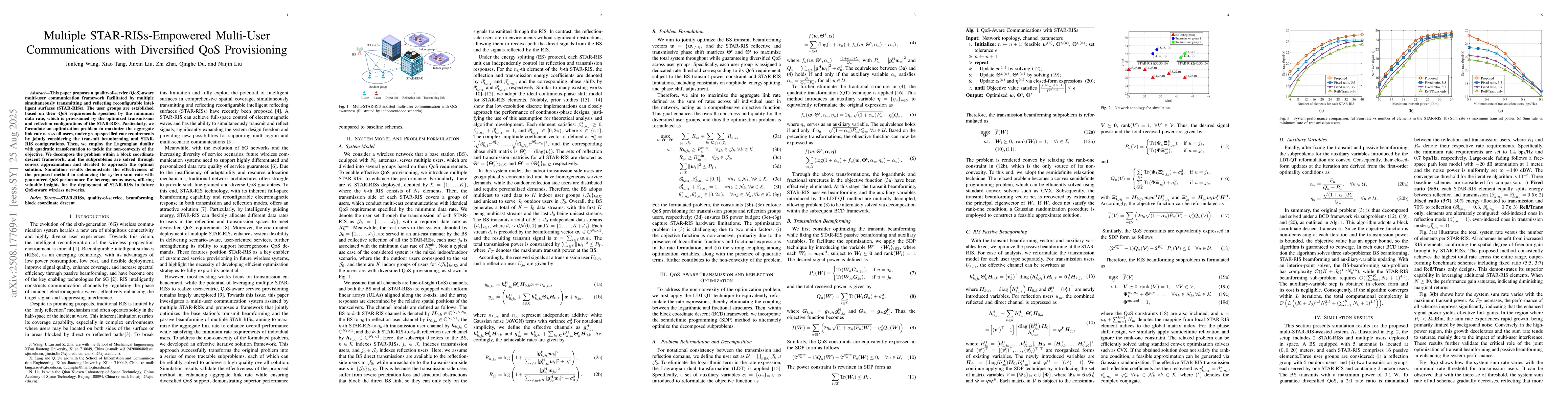 This paper proposes a quality-of-service (QoS)-aware multi-user communication framework facilitated by multiple simultaneously transmitting and reflecting reconfigurable intelligent surfaces (STAR-RISs). The user groups are established based on their QoS requirements specified by the minimum data rate, which is provisioned by the optimized transmission and reflection configurations of the STAR-RISs. Particularly, we formulate an optimization problem to maximize the aggregate link rate across all users, under group-specified rate requirements by jointly considering the transmit beamforming and STAR-RIS configurations. Then, we employ the Lagrangian duality with quadratic transformation to tackle the non-convexity of the objective. We decompose the problem within a block coordinate descent framework, and the subproblems are solved through convex approximation and iterated to approach the optimal solution. Simulation results demonstrate the effectiveness of the proposed method in enhancing the system sum rate with guaranteed QoS performance for heterogeneous users, offering valuable insights for the deployment of STAR-RISs in future QoS-aware wireless networks.