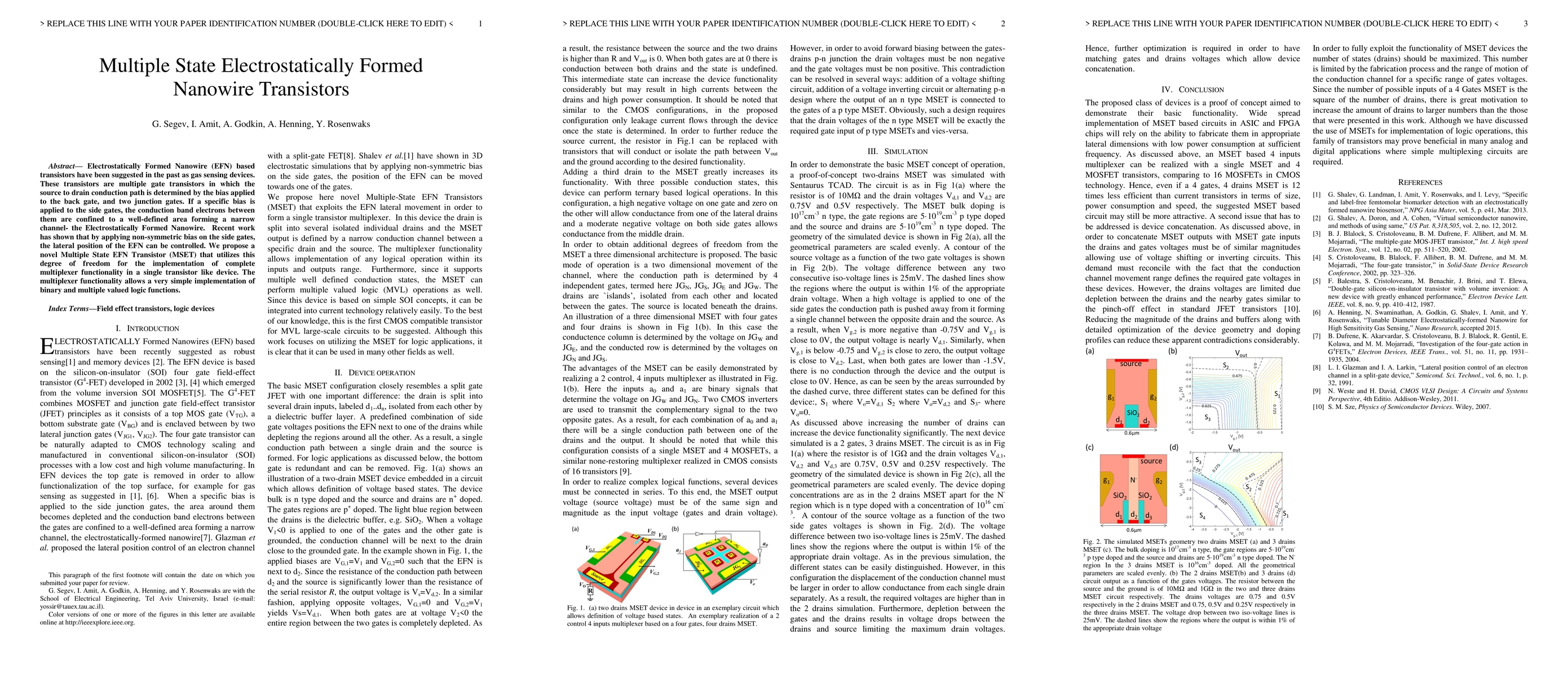By controlling the lateral position of the Electrostatically Formed Nanowire, the MSET can switch between different states to perform various logical operations.