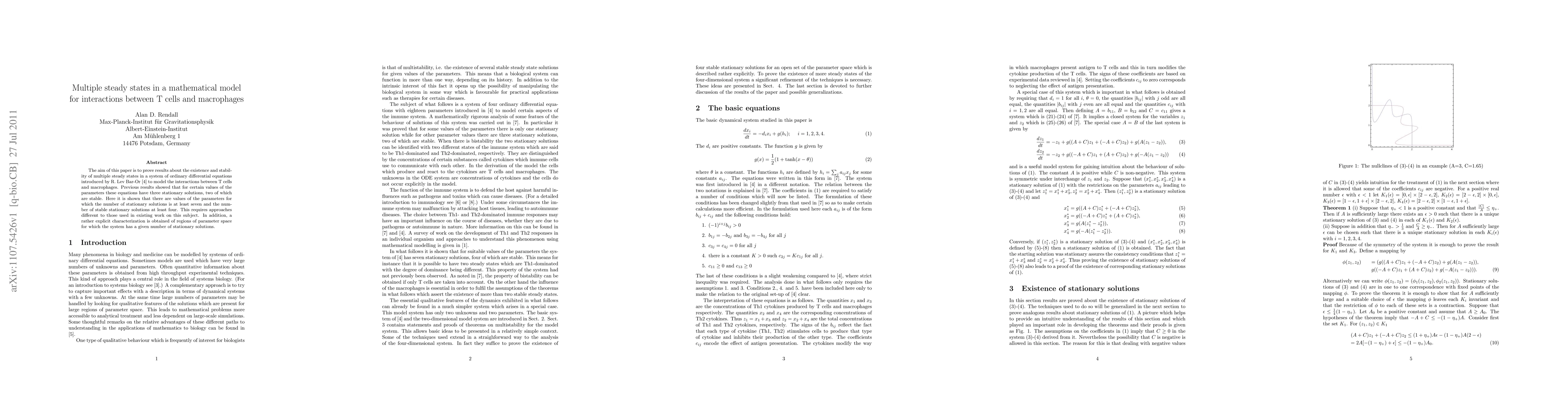 The aim of this paper is to prove results about the existence and stability of multiple steady states in a system of ordinary differential equations introduced by R. Lev Bar-Or to model the interactions between T cells and macrophages. Previous results showed that for certain values of the parameters these equations have three stationary solutions, two of which are stable. Here it is shown that there are values of the parameters for which the number of stationary solutions is at least seven and the number of stable stationary solutions at least four. This requires approaches different to those used in existing work on this subject. In addition, a rather explicit characterization is obtained of regions of parameter space for which the system has a given number of stationary solutions.