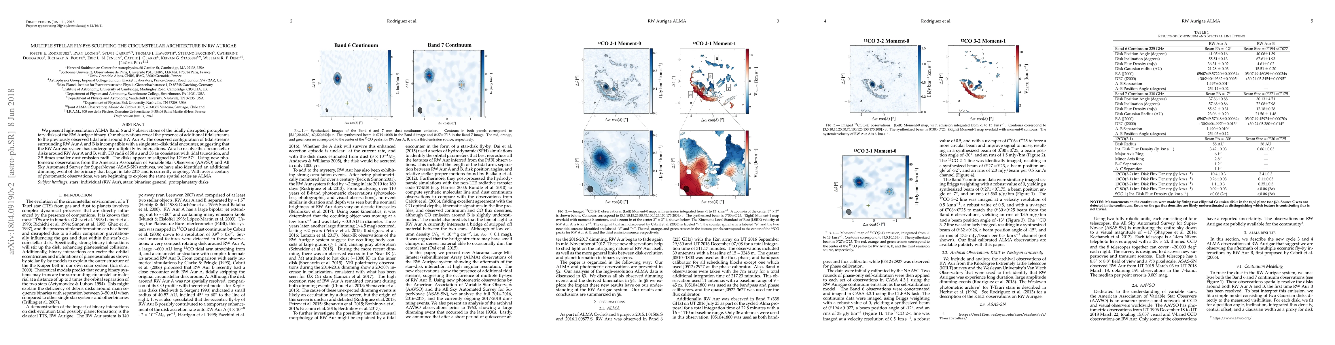We present high-resolution ALMA Band 6 and 7 observations of the tidally disrupted protoplanetary disks of the RW Aurigae binary. Our observations reveal the presence of additional tidal streams to the previously observed tidal arm around RW Aur A. The observed configuration of tidal streams surrounding RW Aur A and B is incompatible with a single star--disk tidal encounter, suggesting that the RW Aurigae system has undergone multiple fly-by interactions. We also resolve the circumstellar disks around RW Aur A and B, with CO radii of 58 au and 38 au consistent with tidal truncation, and 2.5 times smaller dust emission radii. The disks appear misaligned by 12$^{\circ}$ or 57$^{\circ}$. Using new photometric observations from the American Association of Variable Star Observers (AAVSO) and All Sky Automated Survey for SuperNovae (ASAS-SN) archives, we have also identified an additional dimming event of the primary that began in late 2017 and is currently ongoing. With over a century of photometric observations, we are beginning to explore the same spatial scales as ALMA.