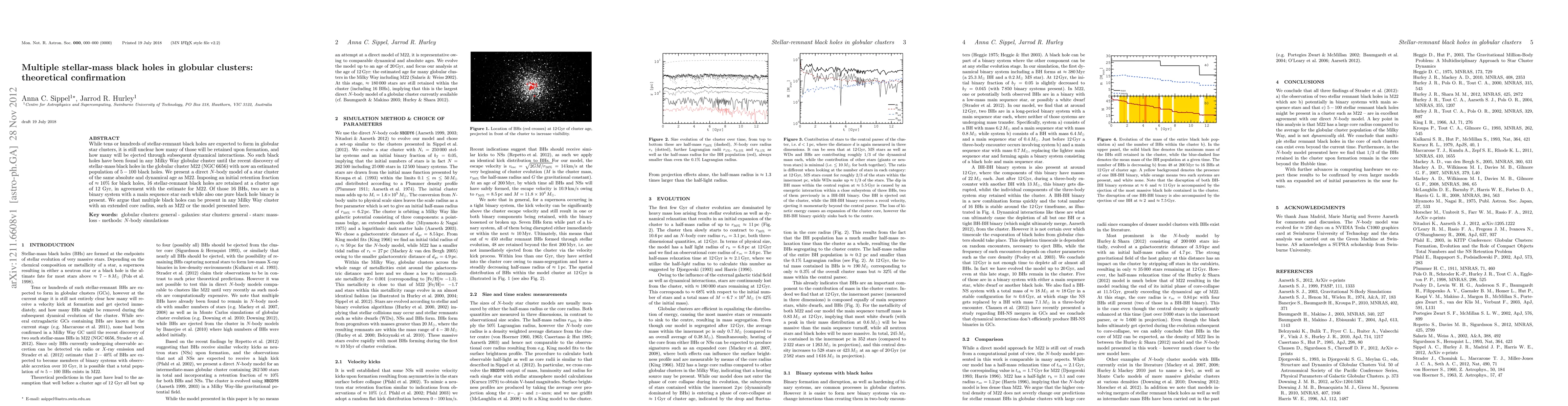 This paper confirms through N-body modeling that globular clusters like M22 can retain multiple stellar-mass black holes, estimating 16 black holes in a cluster of similar age, including binaries. The findings suggest that extended core radius clusters can harbor multiple black holes, supporting recent discoveries in M22.