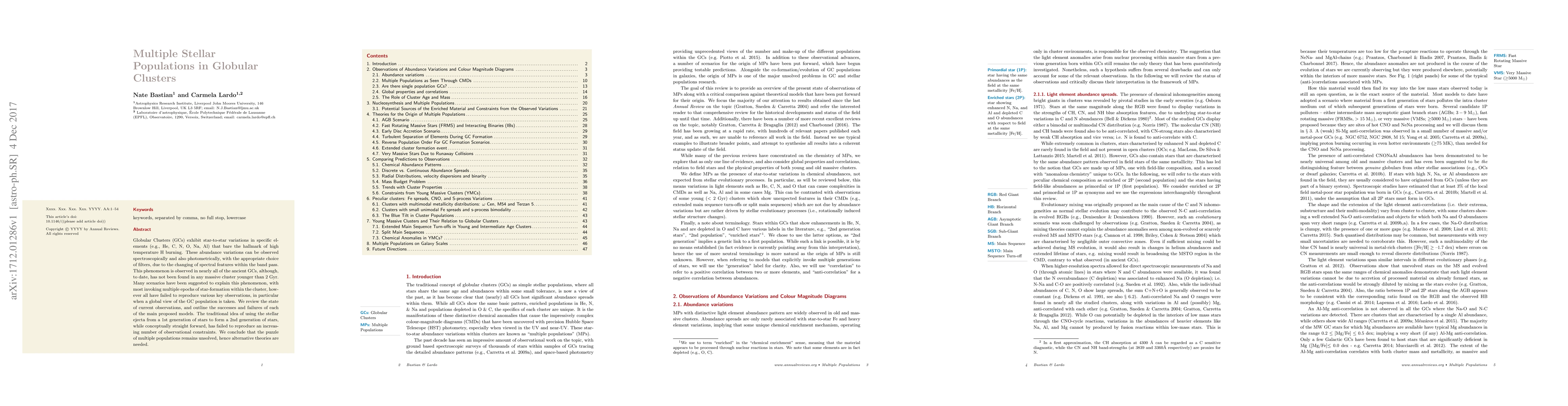 Globular clusters show star-to-star variations in elements, leading to unsolved puzzle of multiple stellar populations. Alternative theories are needed to explain this phenomenon, despite previous models failing to reproduce observational constraints.