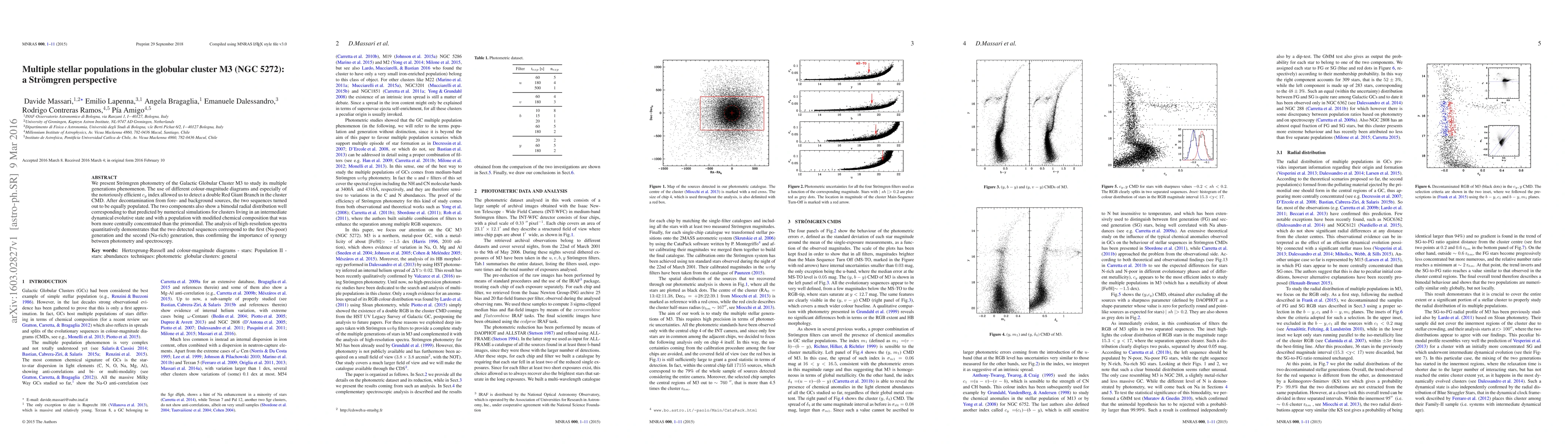 This paper uses Strömgren photometry to investigate the multiple stellar populations in the globular cluster M3, revealing a double Red Giant Branch indicative of two generations. The study confirms the presence of a Na-poor first generation and a Na-rich second generation, supported by high-resolution spectroscopy, highlighting the cluster's complex evolutionary history.