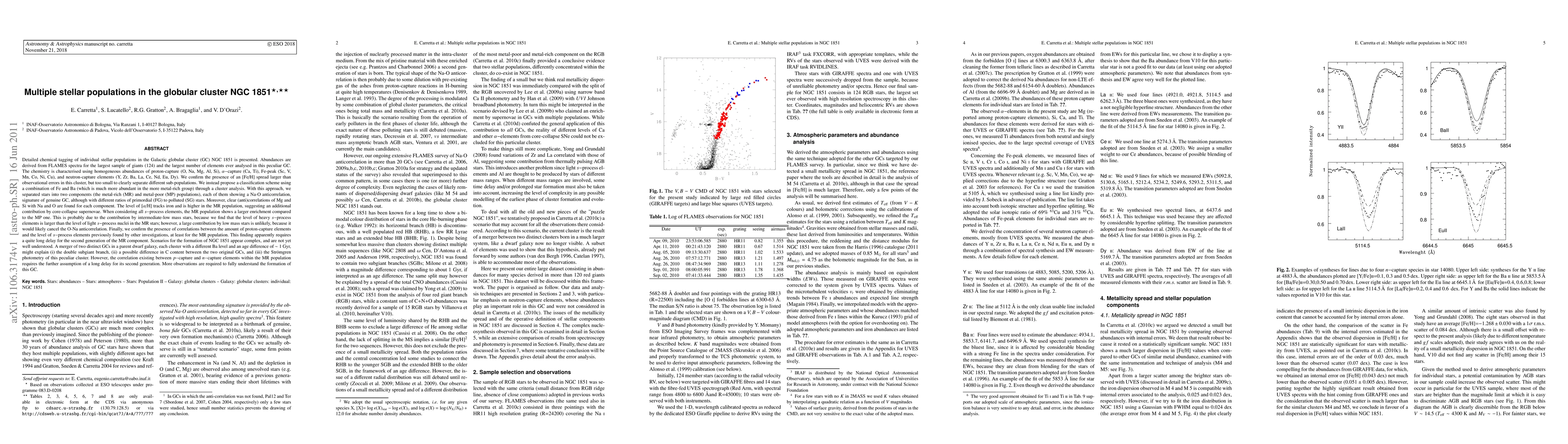 This study analyzes the chemical composition of individual stars in NGC 1851, revealing two distinct stellar populations: metal-rich (MR) and metal-poor (MP), each with a Na-O anticorrelation. The MR population shows higher alpha-element ratios and greater enrichment in s-process elements, likely due to intermediate-low mass stars, suggesting a merger scenario of two distinct globular clusters.