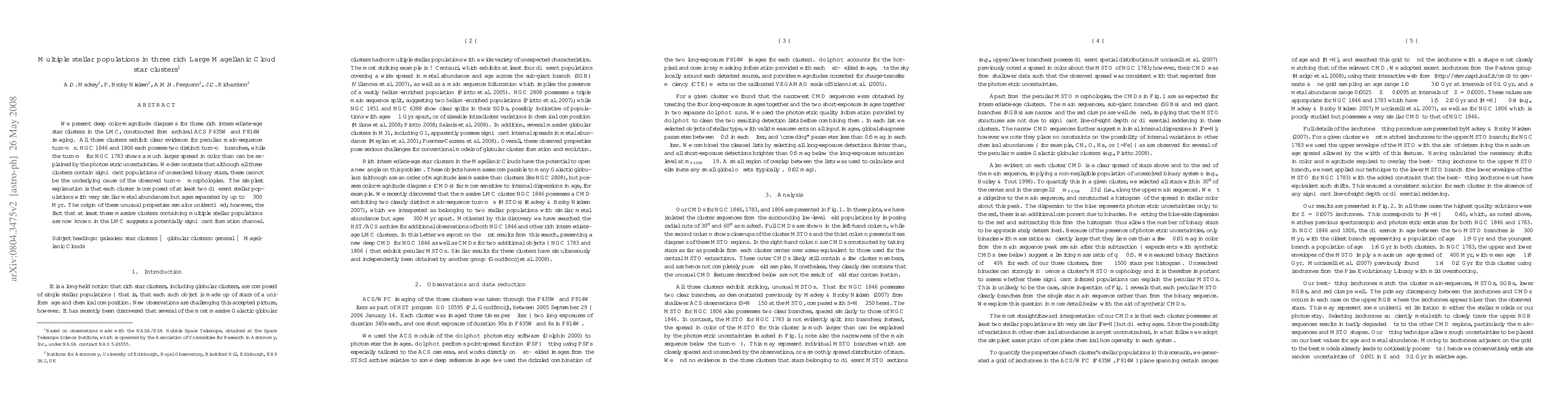 This paper investigates three star clusters in the Large Magellanic Cloud, revealing evidence for multiple stellar populations within each, indicated by peculiar main-sequence turn-offs. The findings suggest that these clusters contain at least two distinct stellar populations with similar metallicities but differing ages, hinting at a significant formation mechanism.