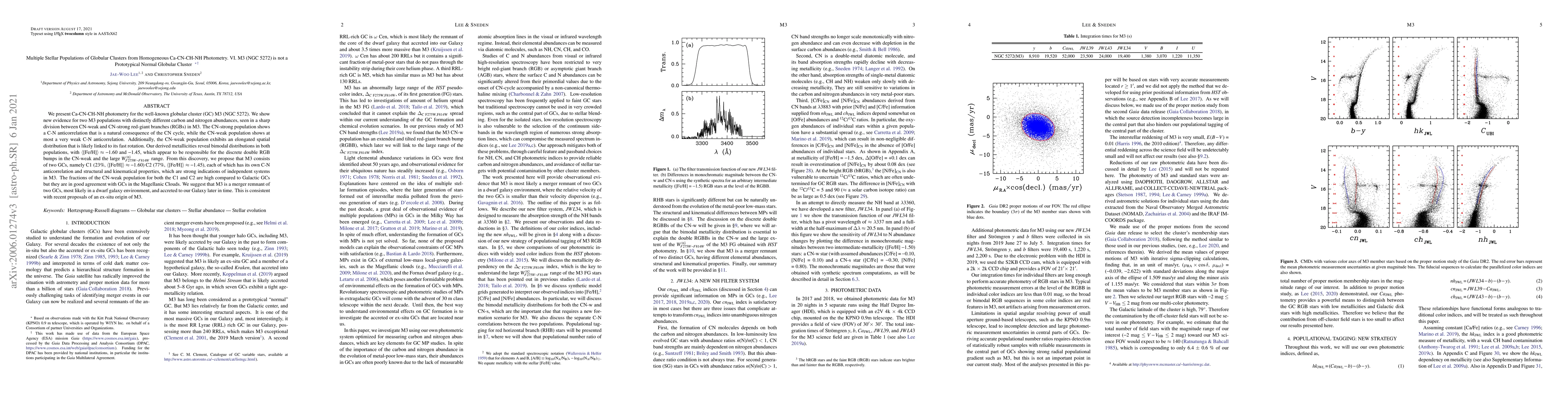 We present Ca-CN-CH-NH photometry for the well-known globular cluster (GC) M3 (NGC 5272). We show new evidence for two M3 populations with distinctly different carbon and nitrogen abundances, seen in a sharp division between CN-weak and CN-strong red-giant branches (RGBs) in M3. The CN-strong population shows a C-N anticorrelation that is a natural consequence of the CN cycle, while the CN-weak population shows no or a weak C-N anticorrelation. Additionally, the CN-weak population exhibits an elongated spatial distribution that is likely linked to its fast rotation. Our derived metallicity reveals bimodal metallicity distributions in both populations, with $\langle$[Fe/H]$\rangle\approx-$1.60 and $-$1.45, which appear to be responsible for the discrete double RGB bumps in the CN-weak and the large $W^{1G}_{F275W-F814W}$ range. From this discovery, we propose that M3 consists of two GCs, namely the C1 (23\%, $\langle$[Fe/H]$\rangle\approx-1.60$) and C2 (77\%, $\langle$[Fe/H]$\rangle\approx-1.45$), each of which has its own C-N anticorrelation and structural and kinematical property, which is a strong indication of independent systems in M3. The fractions of the CN-weak population for both the C1 and C2 are high compared to Galactic GCs but they are in good agreement with GCs in Magellanic Clouds. It is believed that M3 is a merger remnant of the two GCs, most likely in a dwarf galaxy environment, and accreted to our Galaxy later in time. This is consistent with recent proposals of an ex-situ origin of M3.