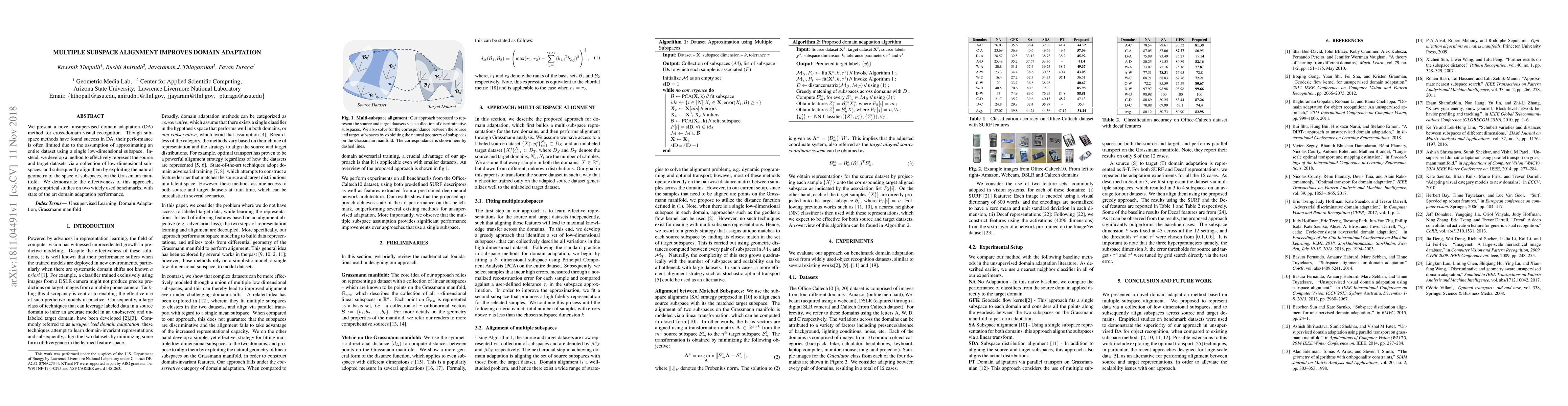 This paper introduces a novel unsupervised domain adaptation method that uses multiple low-dimensional subspaces to better represent source and target datasets, aligning them on the Grassmann manifold for improved performance. Empirical results on two benchmarks show state-of-the-art domain adaptation results.