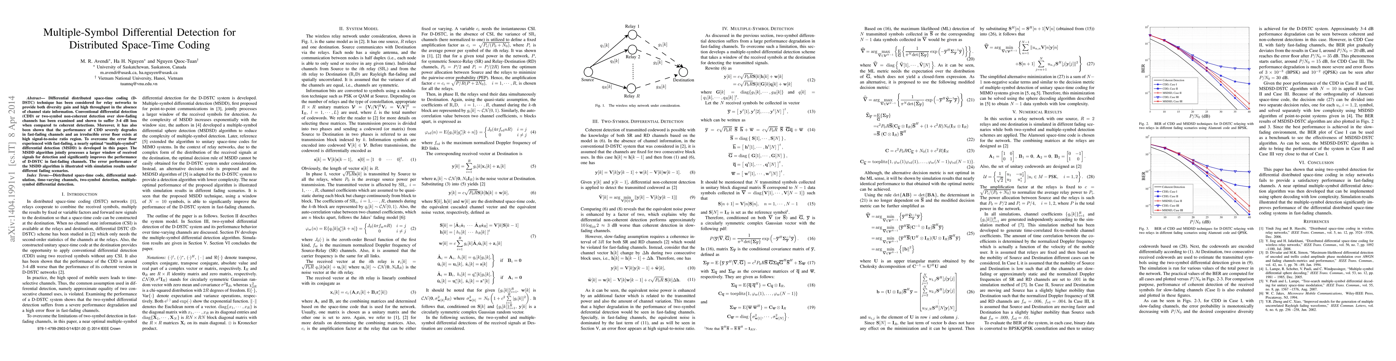 This paper presents a multiple-symbol differential detection (MSDD) algorithm to enhance the performance of differential distributed space-time coding (D-DSTC) in fast-fading channels, addressing the error floor issue of conventional detection methods and improving throughput. Simulation results demonstrate significant performance gains over traditional detection techniques.