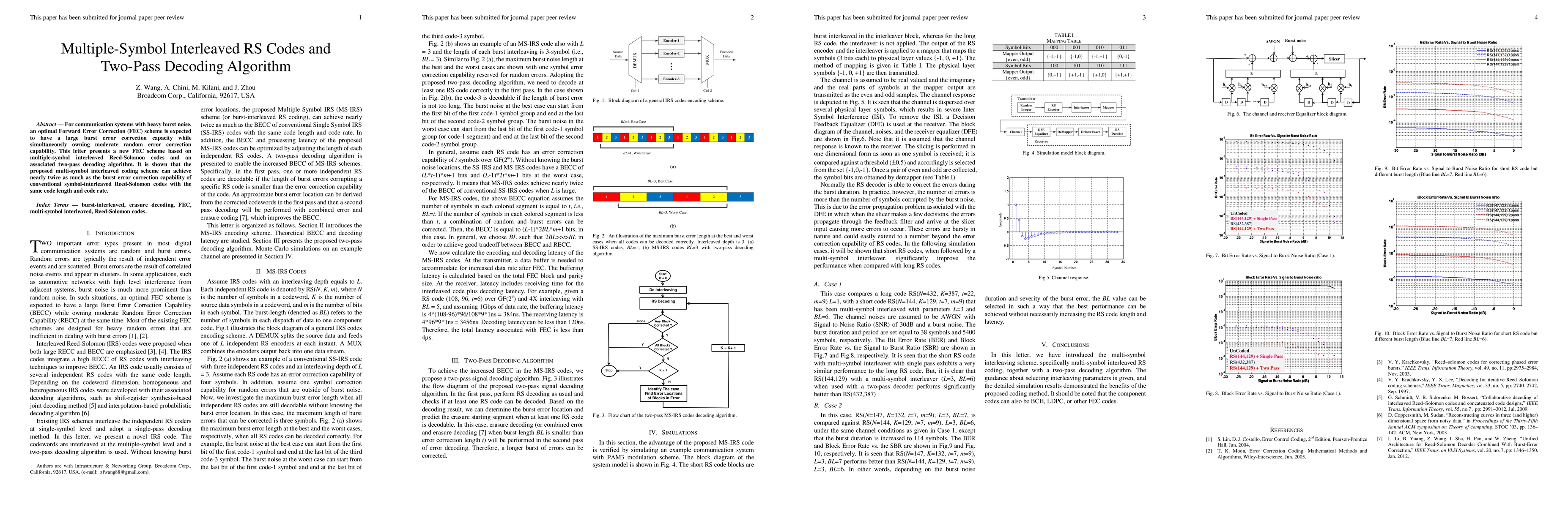 This paper introduces a new Forward Error Correction scheme using multiple-symbol interleaved Reed-Solomon codes and a two-pass decoding algorithm, which significantly enhances burst error correction capacity compared to conventional symbol-interleaved codes while maintaining moderate random error correction capability.