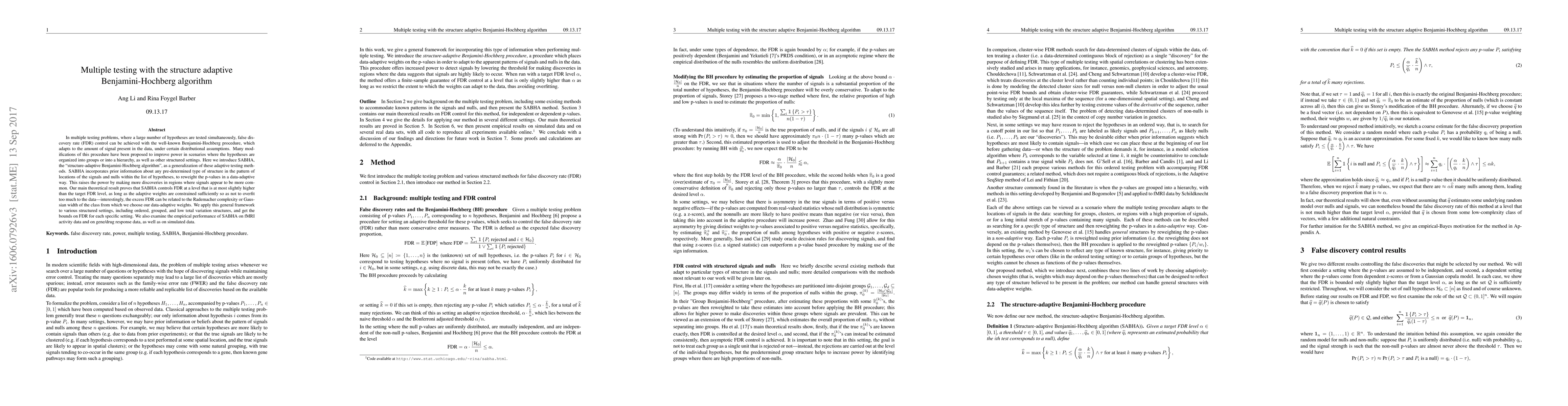The paper introduces SABHA, a structure-adaptive Benjamini-Hochberg algorithm that leverages prior information about data structure to adaptively reweight p-values, thereby enhancing power in detecting signals. Theoretical results show that SABHA controls the false discovery rate (FDR) while allowing for slight excess, which is related to the complexity of the adaptive weight selection.
