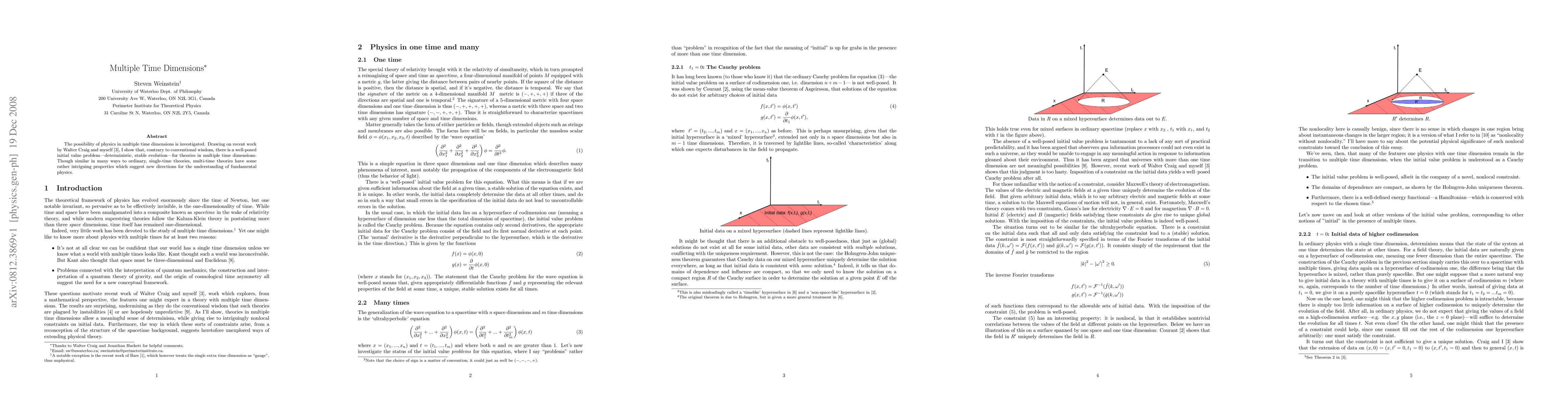 The possibility of physics in multiple time dimensions is investigated. Drawing on recent work by Walter Craig and myself, I show that, contrary to conventional wisdom, there is a well-posed initial value problem--deterministic, stable evolution--for theories in multiple time dimensions. Though similar in many ways to ordinary, single-time theories, multi-time theories have some rather intriguing properties which suggest new directions for the understanding of fundamental physics.