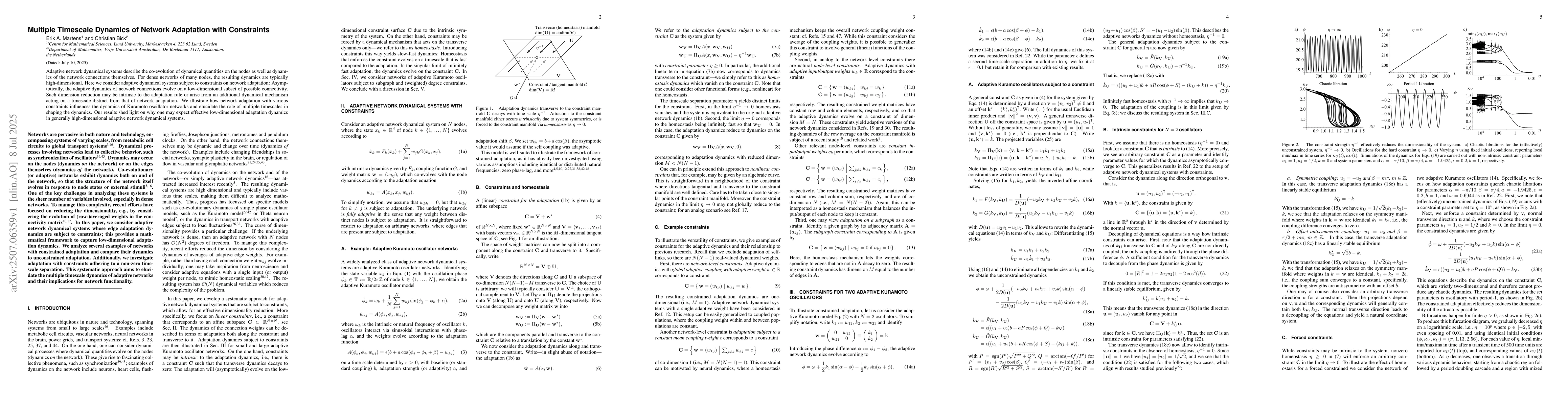 Adaptive network dynamical systems describe the co-evolution of dynamical quantities on the nodes as well as dynamics of the network connections themselves. For dense networks of many nodes, the resulting dynamics are typically high-dimensional. Here we consider adaptive dynamical systems subject to constraints on network adaptation: Asymptotically, the adaptive dynamics of network connections evolve on a low-dimensional subset of possible connectivity. Such dimension reduction may be intrinsic to the adaptation rule or arise from an additional dynamical mechanism acting on a timescale distinct from that of network adaptation. We illustrate how network adaptation with various constraints influences the dynamics of Kuramoto oscillator networks and elucidate the role of multiple timescales in shaping the dynamics. Our results shed light on why one may expect effective low-dimensional adaptation dynamics in generally high-dimensional adaptive network dynamical systems.