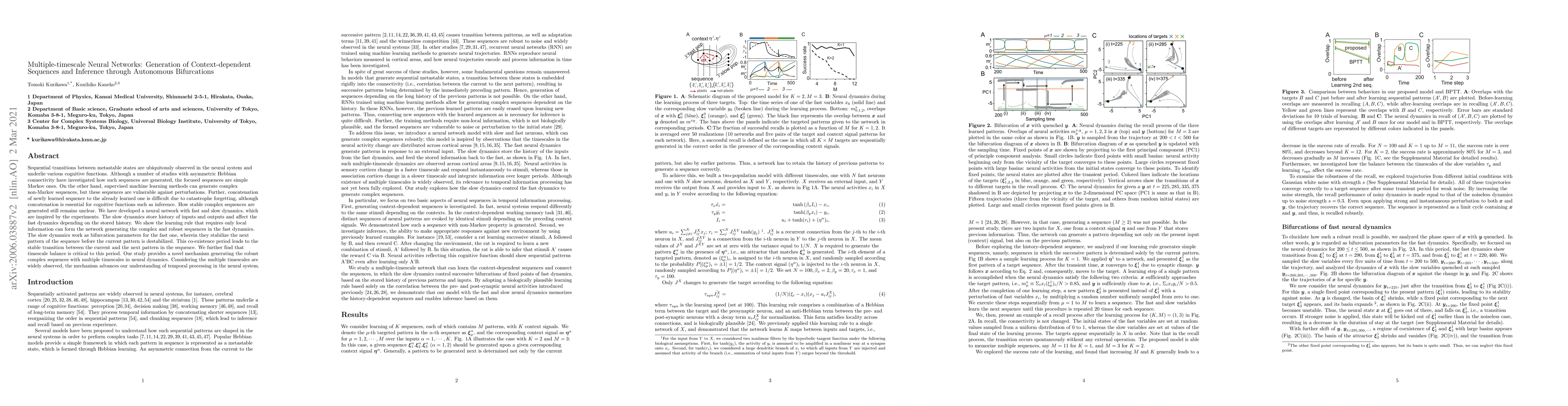 This paper develops a neural network with fast and slow dynamics to generate stable, complex sequences, addressing the challenge of sequence concatenation and perturbation vulnerability. The slow dynamics act as bifurcation parameters for the fast dynamics, enabling stable transitions between sequence patterns through a period of co-existence. This mechanism enhances our understanding of temporal processing in neural systems.