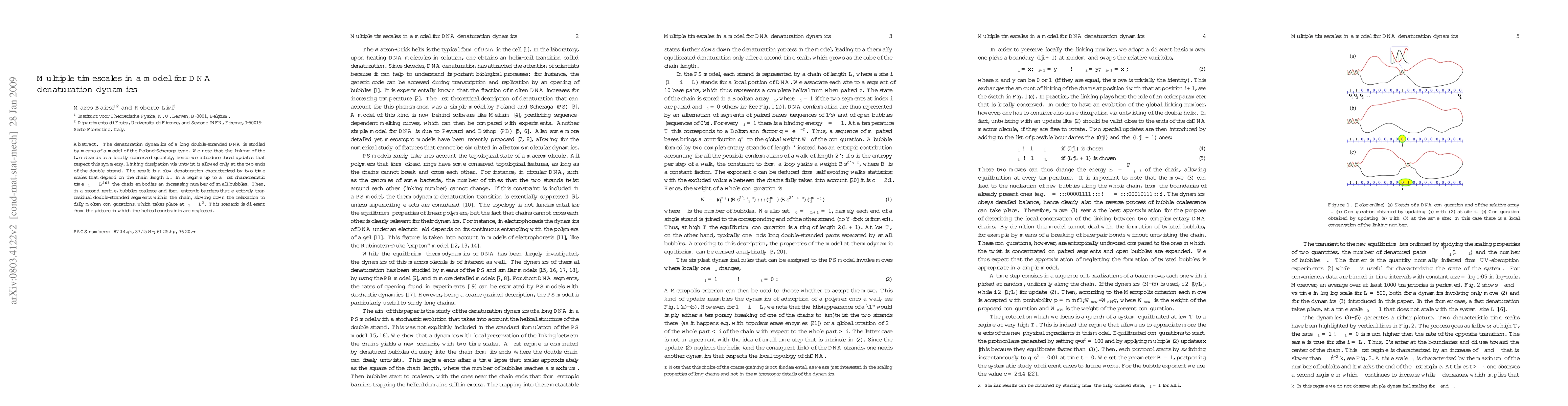 The denaturation dynamics of a long double-stranded DNA is studied by means of a model of the Poland-Scheraga type. We note that the linking of the two strands is a locally conserved quantity, hence we introduce local updates that respect this symmetry. Linking dissipation via untwist is allowed only at the two ends of the double strand. The result is a slow denaturation characterized by two time scales that depend on the chain length $L$. In a regime up to a first characteristic time $\tau_1\sim L^{2.15}$ the chain embodies an increasing number of small bubbles. Then, in a second regime, bubbles coalesce and form entropic barriers that effectively trap residual double-stranded segments within the chain, slowing down the relaxation to fully molten configurations, which takes place at $\tau_2\sim L^3$. This scenario is different from the picture in which the helical constraints are neglected.