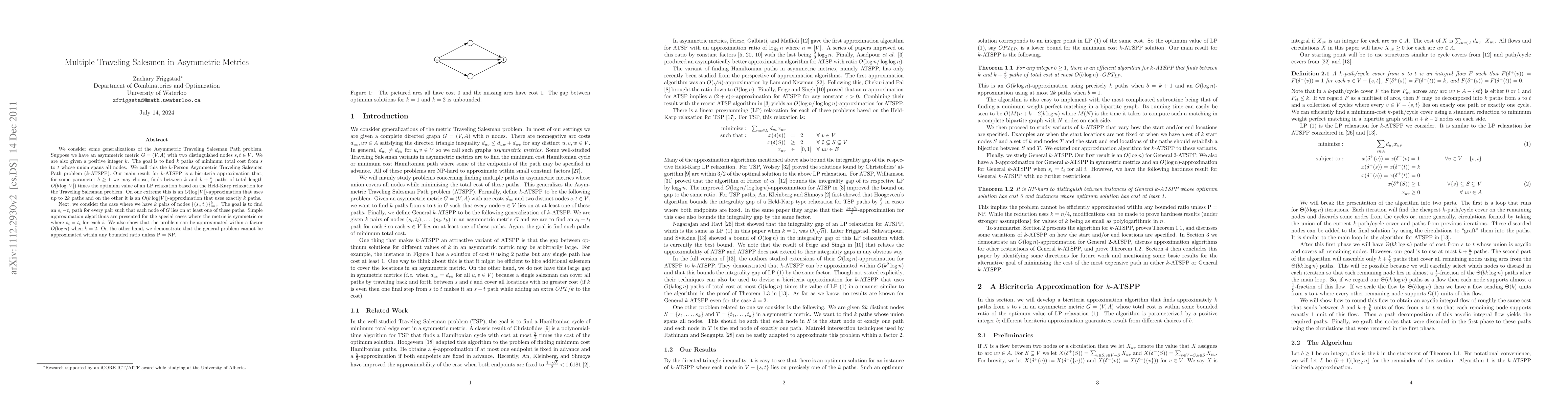 This paper addresses the k-Person Asymmetric Traveling Salesmen Path problem (k-ATSPP) in asymmetric metrics, presenting a bicriteria approximation that finds k to k + k/b paths with total length O(b log |V|) times the optimum LP relaxation value. It also explores scenarios with k pairs of nodes, providing simple approximations for symmetric metrics and proving inapproximability for general cases unless P = NP.