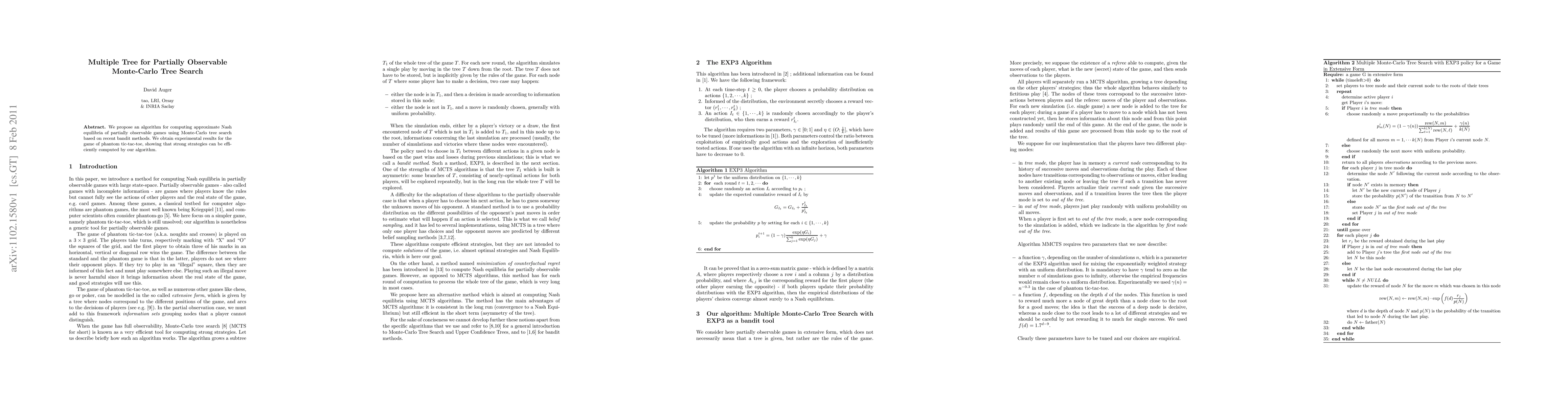 This paper introduces a novel Monte-Carlo tree search algorithm for finding Nash equilibria in partially observable games, demonstrating its effectiveness through experiments on phantom tic-tac-toe. The method leverages bandit techniques to efficiently compute strong strategies.