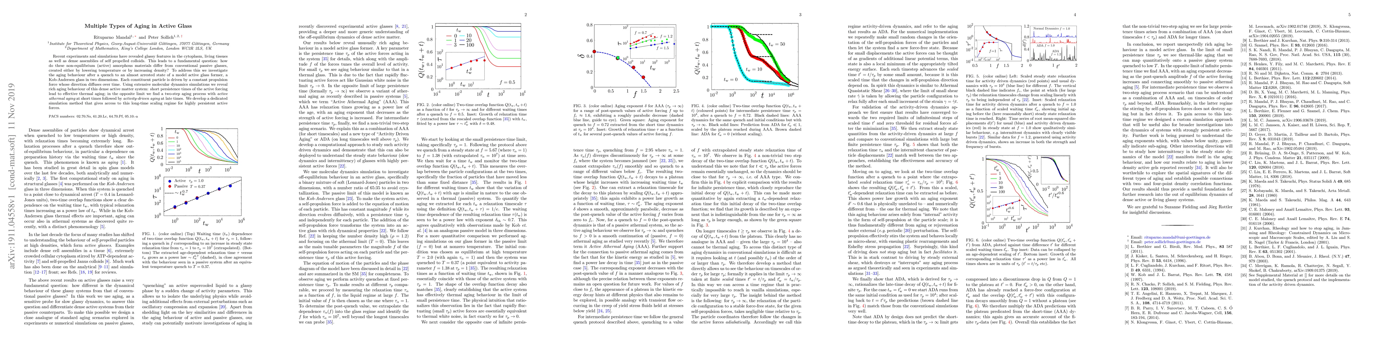 This paper investigates the aging behavior in active glass systems, revealing distinct aging processes compared to conventional passive glasses. Through molecular dynamics simulations, it finds that short persistence times of active forces lead to thermal aging, while long persistence times result in a two-step aging process: initial athermal aging followed by activity-driven aging at later times.