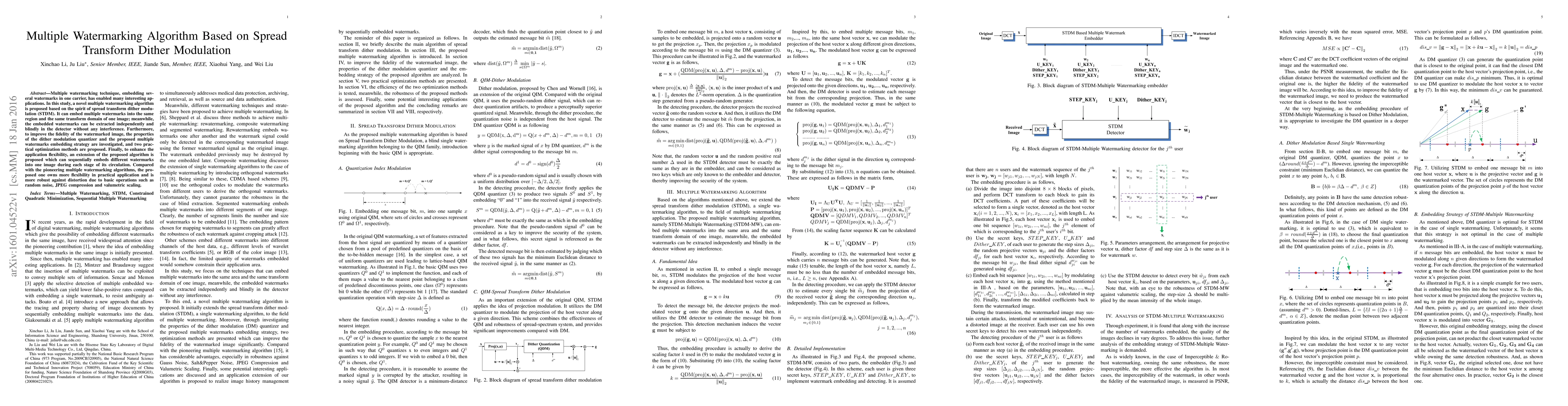 This paper proposes a novel multiple watermarking algorithm based on spread transform dither modulation (STDM) that embeds and independently extracts multiple watermarks without interference. The study introduces optimization methods to enhance image fidelity and flexibility in embedding different watermarks sequentially during image circulation, demonstrating improved robustness against common distortions.