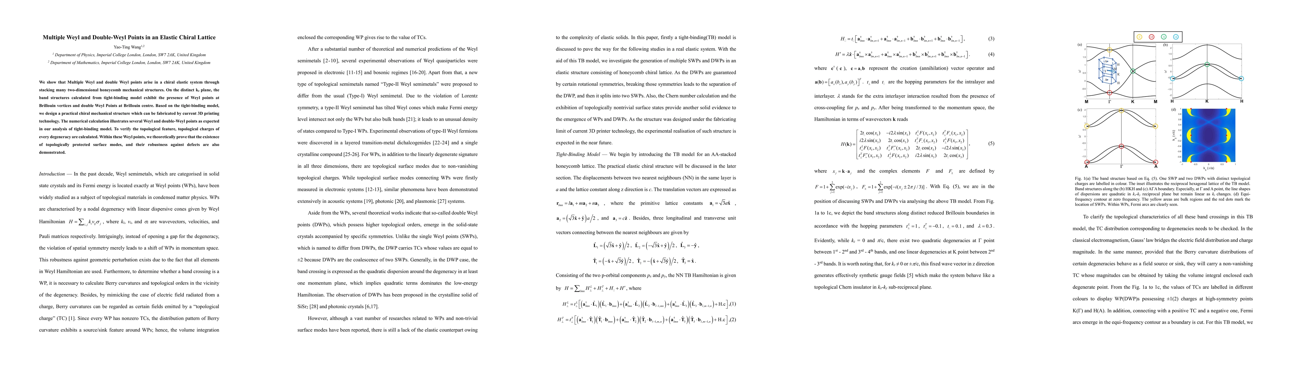 Researchers discover multiple Weyl and double-Weyl points in a chiral elastic system created by stacking two-dimensional honeycomb structures, showcasing topological protection and robustness against defects.