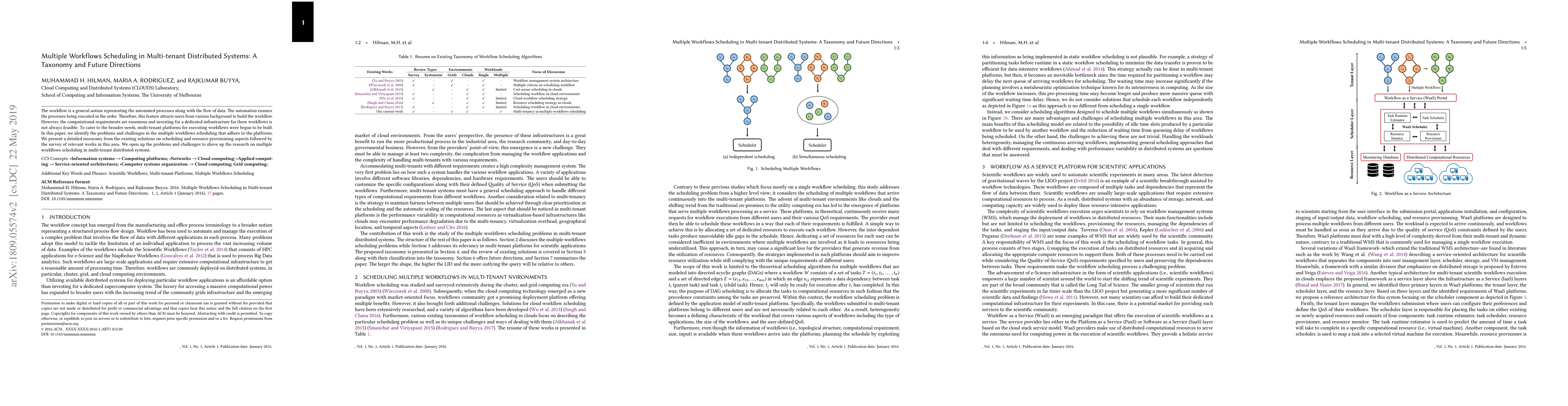 This paper examines the challenges and problems in scheduling multiple workflows in multi-tenant distributed systems, presenting a detailed taxonomy of existing solutions and surveying relevant works to highlight future research directions.