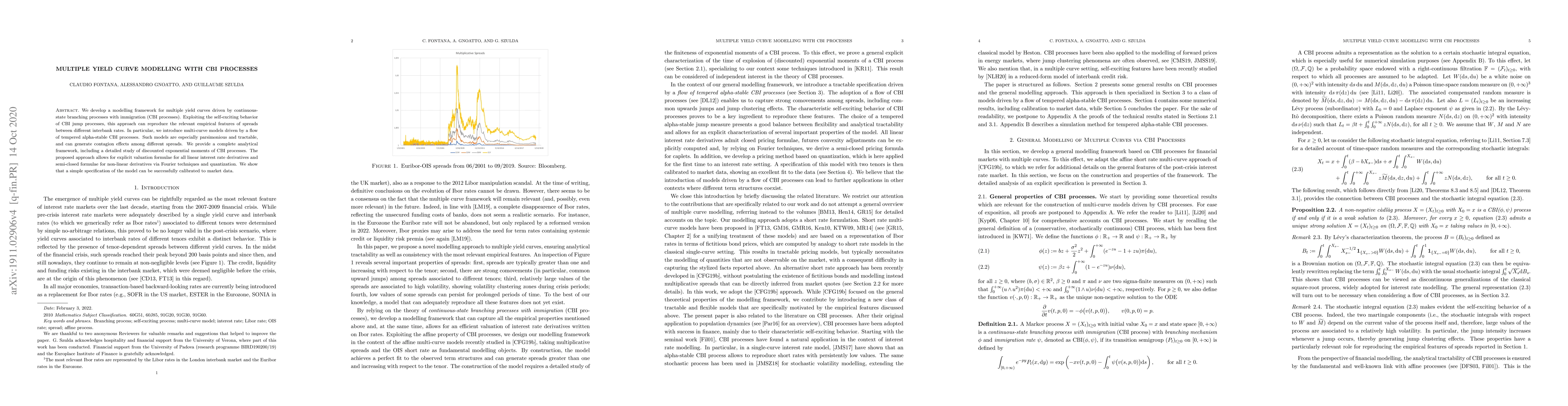 This paper develops a modelling framework for multiple yield curves using continuous-state branching processes with immigration (CBI processes), capturing empirical features of interbank rates and generating contagion effects. The analytical framework includes valuation formulae for linear and non-linear interest rate derivatives, and the model is successfully calibrated to market data.