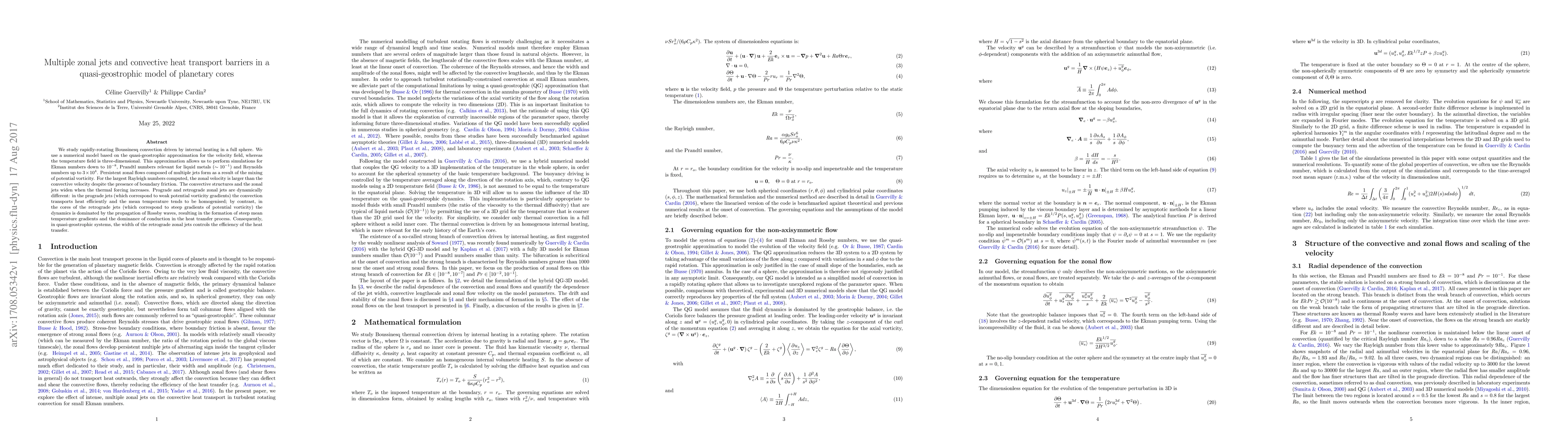 We study rapidly-rotating Boussinesq convection driven by internal heating in a full sphere. We use a numerical model based on the quasi-geostrophic approximation for the velocity field, whereas the temperature field is three-dimensional. This approximation allows us to perform simulations for Ekman numbers down to 1e-8, Prandtl numbers relevant for liquid metals (~0.1) and Reynolds numbers up to 3e4. Persistent zonal flows composed of multiple jets form as a result of the mixing of potential vorticity. For the largest Rayleigh numbers computed, the zonal velocity is larger than the convective velocity despite the presence of boundary friction. The convective structures and the zonal jets widen when the thermal forcing increases. Prograde and retrograde zonal jets are dynamically different: in the prograde jets (which correspond to weak potential vorticity gradients) the convection transports heat efficiently and the mean temperature tends to be homogenised; by contrast, in the cores of the retrograde jets (which correspond to steep gradients of potential vorticity) the dynamics is dominated by the propagation of Rossby waves, resulting in the formation of steep mean temperature gradients and the dominance of conduction in the heat transfer process. Consequently, in quasi-geostrophic systems, the width of the retrograde zonal jets controls the efficiency of the heat transfer.