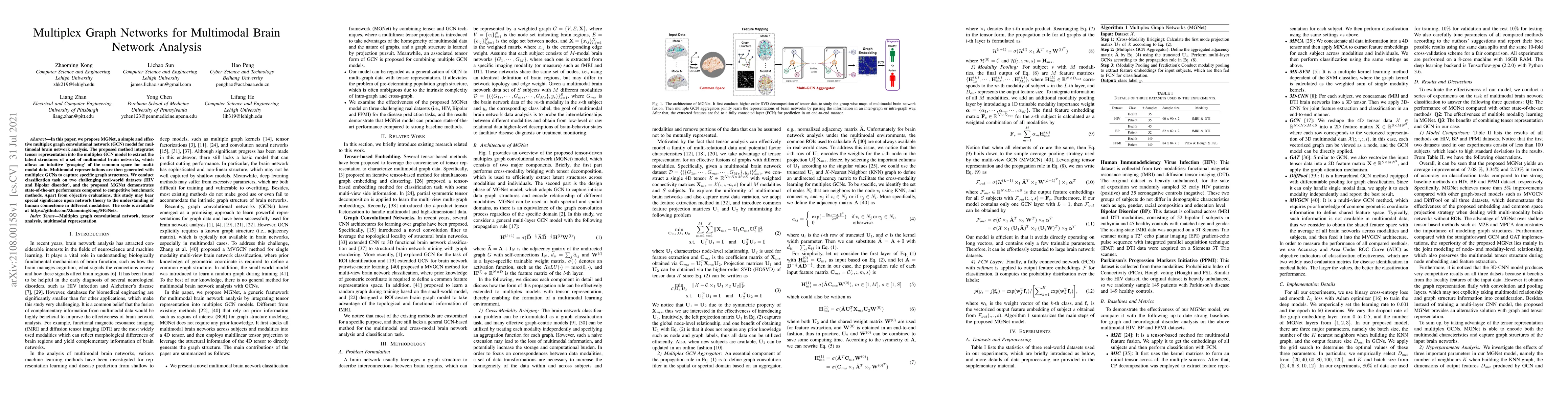 This paper introduces MGNet, a multiplex graph convolutional network for multimodal brain network analysis, integrating tensor representation to extract latent structures and generate multimodal representations. The method achieves state-of-the-art performance in classification tasks on HIV and Bipolar disorder datasets, offering new insights into human connectome understanding.