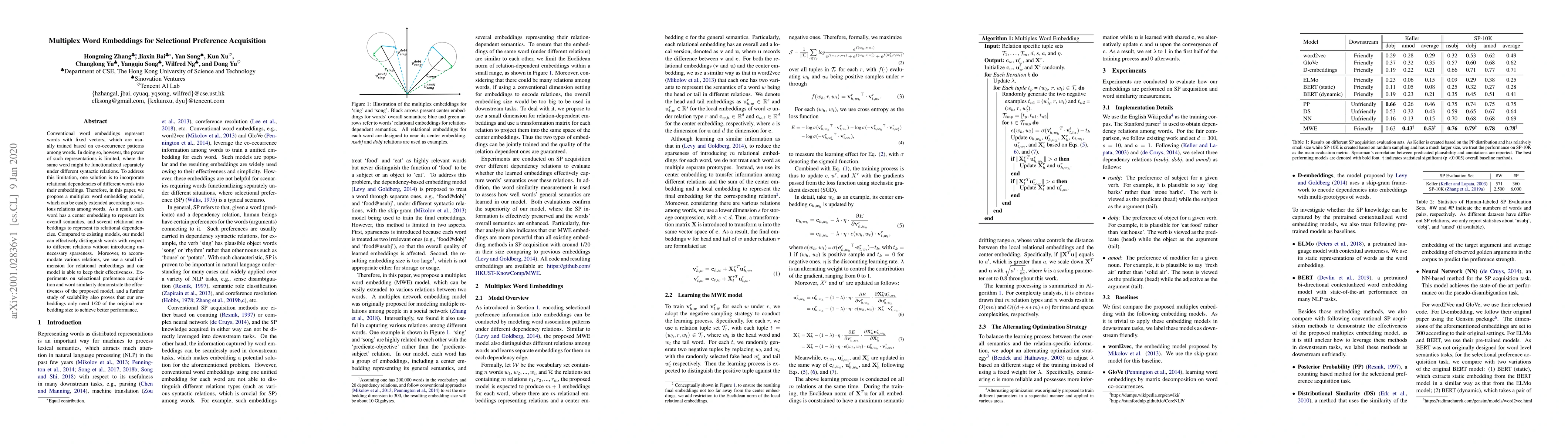 This paper proposes a multiplex word embedding model that incorporates relational dependencies to represent words in different syntactic relations. The model effectively distinguishes words based on their relations without introducing sparseness, using a small dimension for relational embeddings to maintain effectiveness.