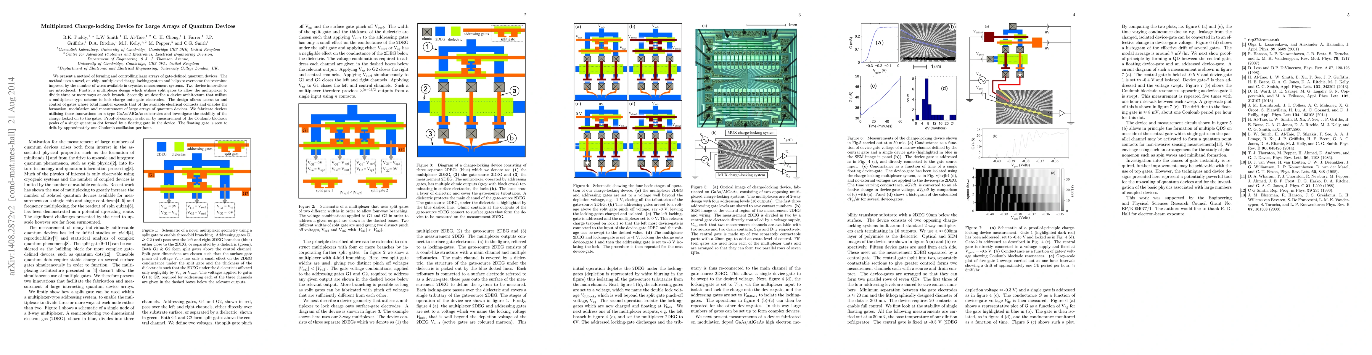 We present a method of forming and controlling large arrays of gate-defined quantum devices. The method uses a novel, on-chip, multiplexed charge-locking system and helps to overcome the restraints imposed by the number of wires available in cryostat measurement systems. Two device innovations are introduced. Firstly, a multiplexer design which utilises split gates to allow the multiplexer to divide three or more ways at each branch. Secondly we describe a device architecture that utilises a multiplexer-type scheme to lock charge onto gate electrodes. The design allows access to and control of gates whose total number exceeds that of the available electrical contacts and enables the formation, modulation and measurement of large arrays of quantum devices. We fabricate devices utilising these innovations on n-type GaAs/AlGaAs substrates and investigate the stability of the charge locked on to the gates. Proof-of-concept is shown by measurement of the Coulomb blockade peaks of a single quantum dot formed by a floating gate in the device. The floating gate is seen to drift by approximately one Coulomb oscillation per hour.