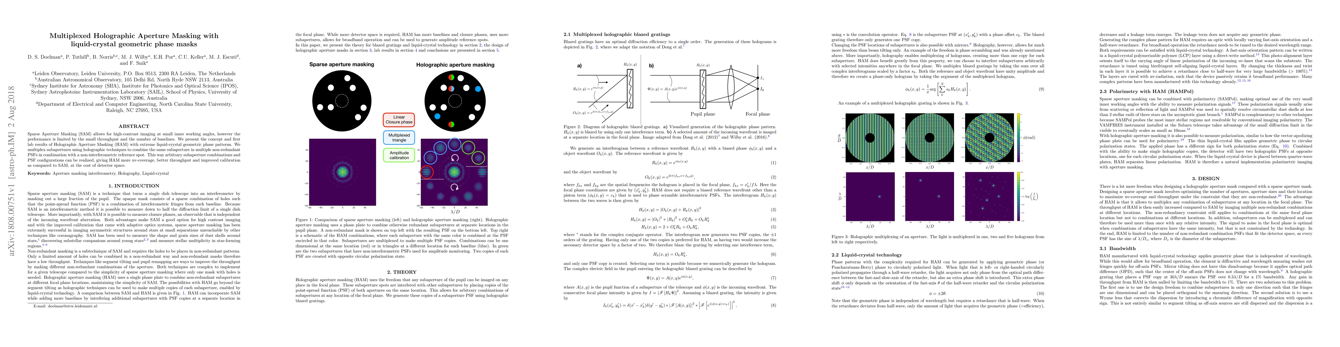 This paper introduces Holographic Aperture Masking (HAM) using liquid-crystal geometric phase masks to enhance sparse aperture masking imaging. By multiplexing holographic subapertures, HAM achieves higher throughput and better calibration, though it requires more detector space.
