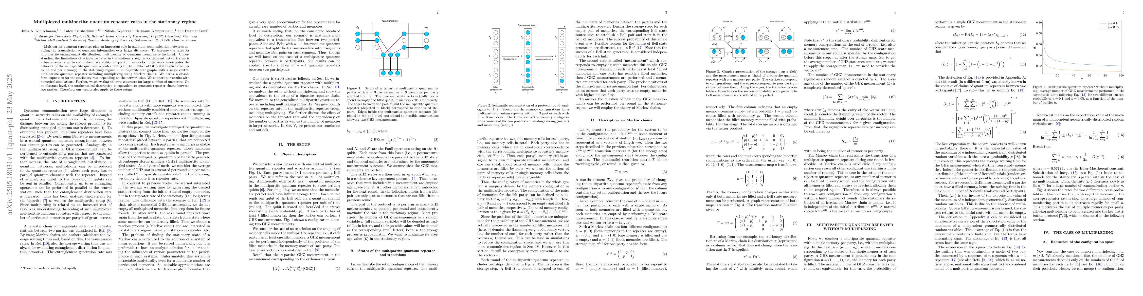 This work extends previous research on quantum repeater chains by incorporating multiplexing and analyzing multipartite star graphs, providing insights into the scalability of quantum networks.
