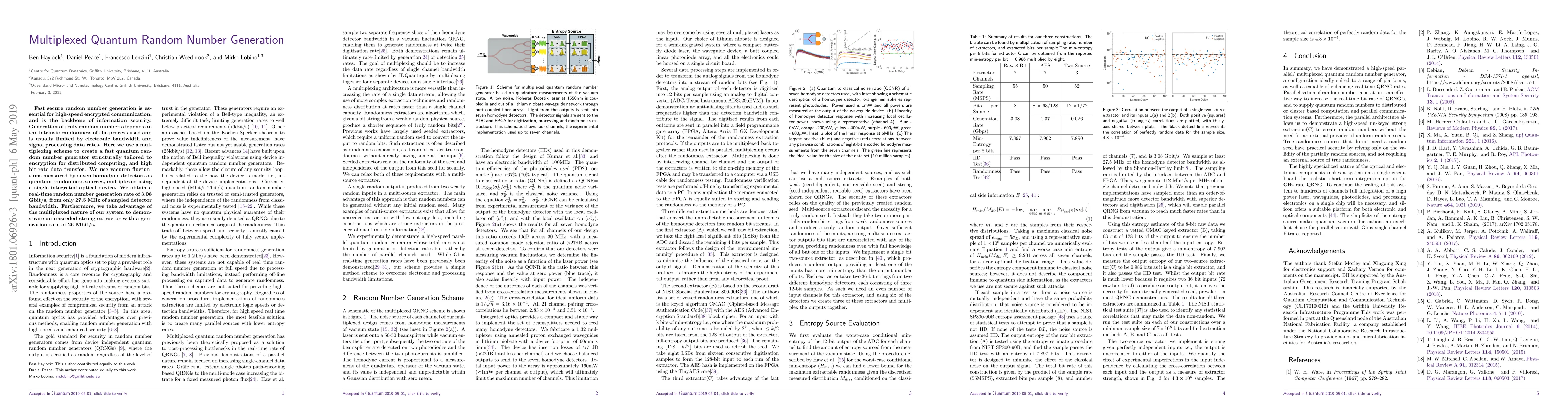 The paper presents a novel multiplexed quantum random number generator architecture that increases data rate, bypassing single-channel bandwidth limitations and enabling parallel random number generation.