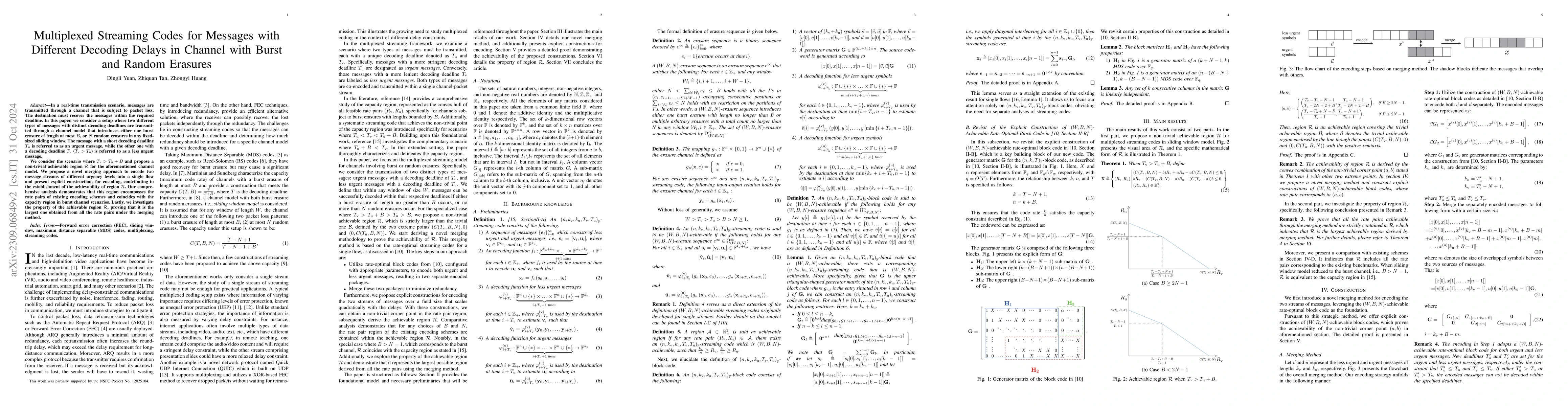 This paper proposes a merging method for encoding two message streams with different urgency levels into a single flow to handle burst and random erasures in a transmission channel. The authors establish an upper limit on achievable sum rate for such merging and provide constructions that outperform separate encoding methods.