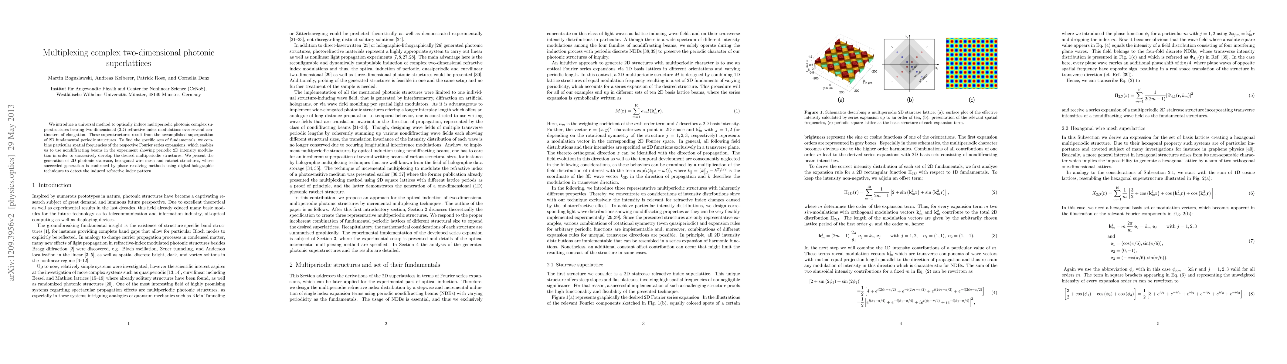 We introduce a universal method to optically induce multiperiodic photonic complex superstructures bearing two-dimensional (2D) refractive index modulations over several centimeters of elongation. These superstructures result from the accomplished superposition of 2D fundamental periodic structures. To find the specific sets of fundamentals, we combine particular spatial frequencies of the respective Fourier series expansions, which enables us to use nondiffracting beams in the experiment showing periodic 2D intensity modulation in order to successively develop the desired multiperiodic structures. We present the generation of 2D photonic staircase, hexagonal wire mesh and ratchet structures, whose succeeded generation is confirmed by phase resolving methods using digital-holographic techniques to detect the induced refractive index pattern.