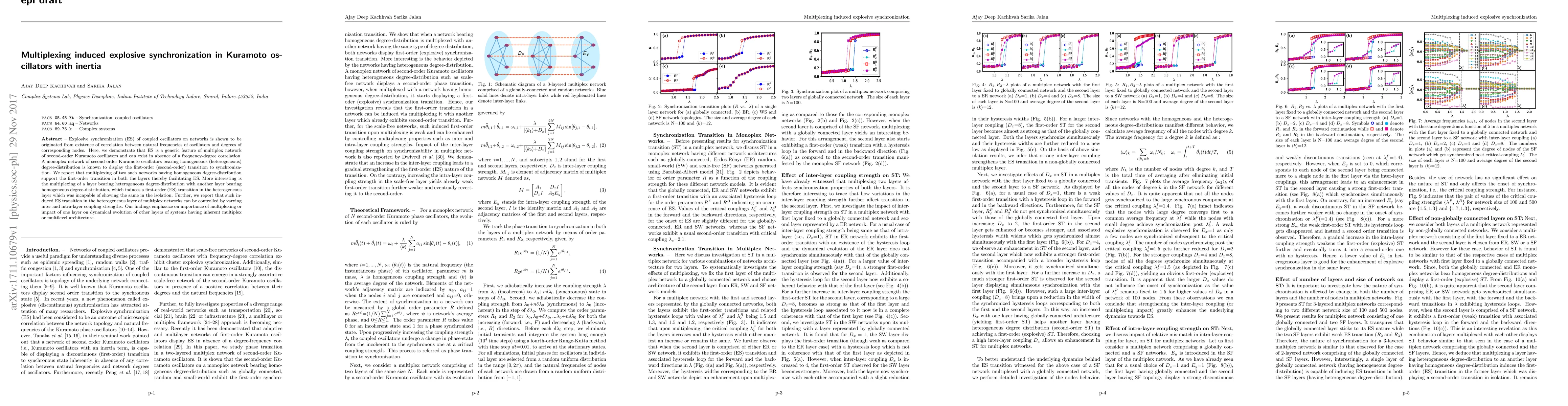 This paper explores explosive synchronization (ES) in multiplex networks of second-order Kuramoto oscillators, demonstrating that ES can occur without frequency-degree correlations. It shows that multiplexing layers with different degree distributions can induce ES in layers that would not otherwise exhibit it, and that this transition can be controlled by adjusting coupling strengths.