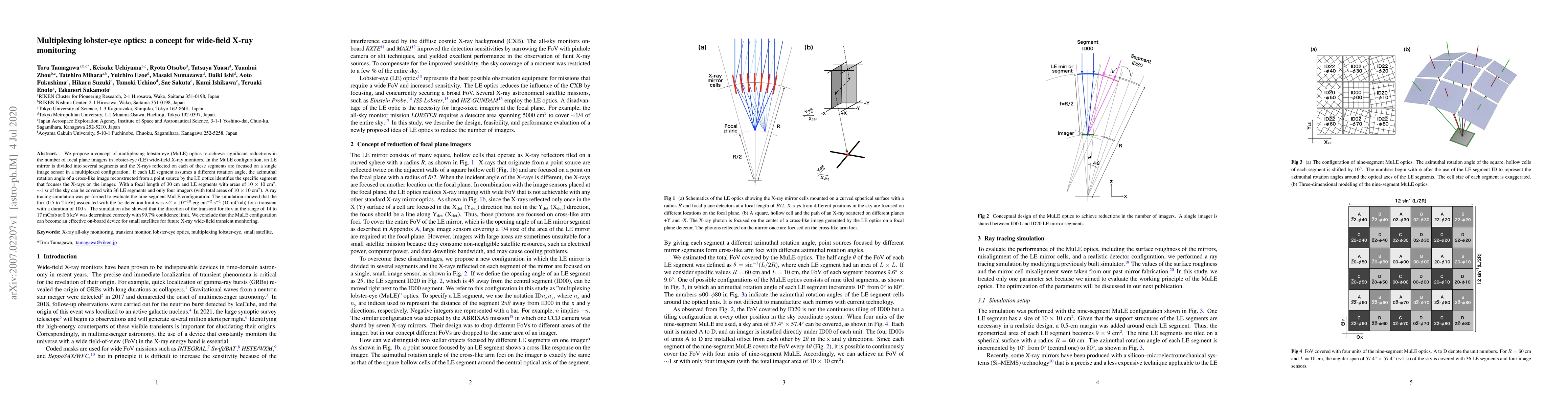 The paper proposes a multiplexing lobster-eye (MuLE) optics concept to reduce the number of imagers in wide-field X-ray monitors, using segments of an LE mirror to focus X-rays onto a single sensor. Simulation results indicate the MuLE configuration can effectively monitor X-ray transients with high confidence, making it a viable option for small satellite X-ray monitoring.