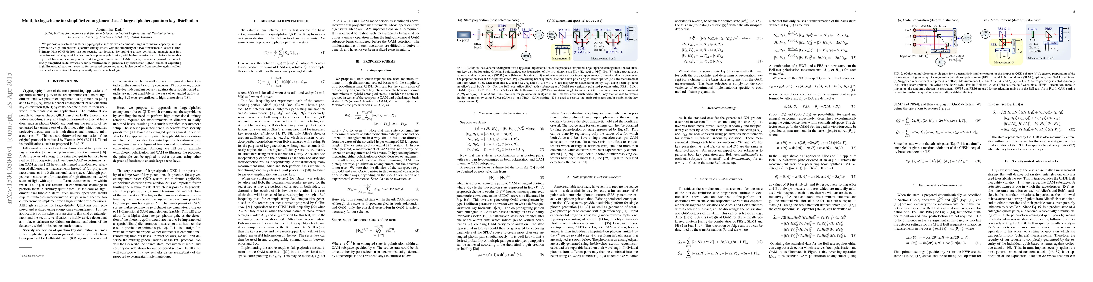 This paper proposes a quantum cryptographic scheme that leverages high-dimensional quantum entanglement for enhanced information capacity and simplifies security verification using a two-dimensional CHSH Bell test, combining photon polarization with high-dimensional correlations for practical, secure quantum key distribution. The scheme is feasible with current technology and secure against collective attacks.