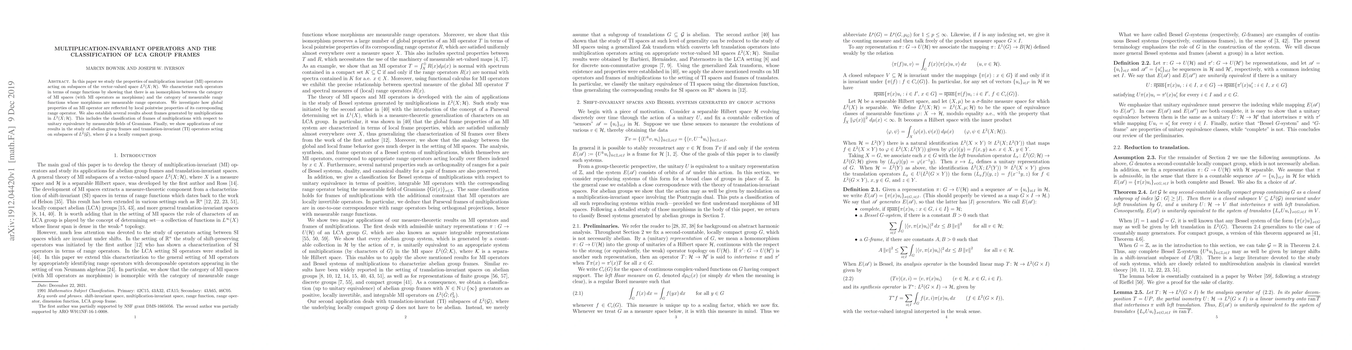 Researchers developed a connection between multiplication-invariant operators and measurable range functions to classify frames in LCA group spaces, with applications in studying abelian group frames and translation-invariant operators.