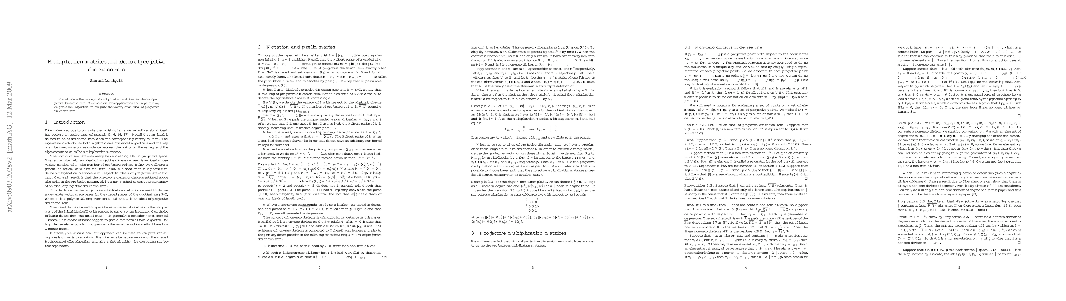 We introduce the concept of multiplication matrices for ideals of projective dimension zero. We discuss various applications and in particular, we give a new algorithm to compute the variety of an ideal of projective dimension zero.