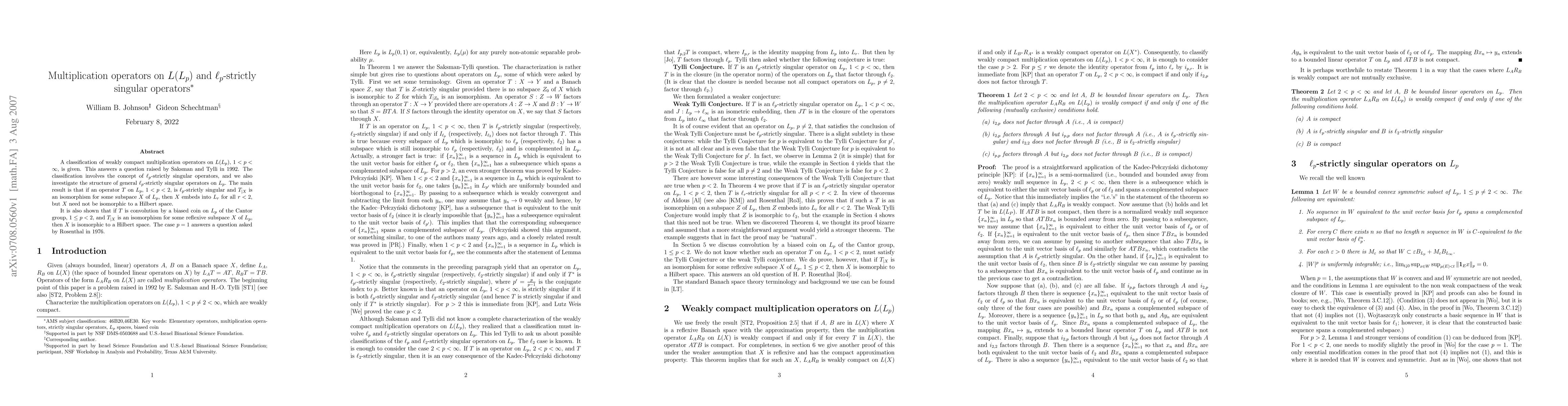 This paper classifies weakly compact multiplication operators on L(L_p) for $1<p<\infty$, focusing on $\ell_p$-strictly singular operators. It reveals that if an operator T on L_p ($1<p<2$) is $\ell_p$-strictly singular and T_{|X} is an isomorphism for some subspace X of L_p, then X embeds into L_r for all r<2, though X is not necessarily isomorphic to a Hilbert space.