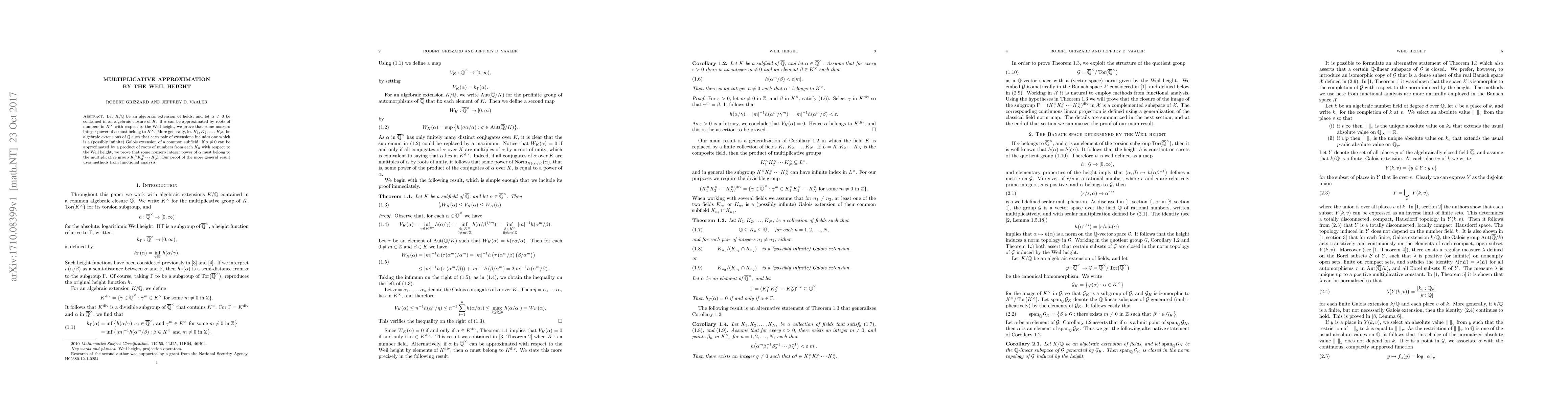 Let $K/\mathbb{Q}$ be an algebraic extension of fields, and let $\alpha \not= 0$ be contained in an algebraic closure of $K$. If $\alpha$ can be approximated by roots of numbers in $K^{\times}$ with respect to the Weil height, we prove that some nonzero integer power of $\alpha$ must belong to $K^{\times}$. More generally, let $K_1, K_2, \dots , K_N$, be algebraic extensions of $\mathb{Q}$ such that each pair of extensions includes one which is a (possibly infinite) Galois extension of a common subfield. If $\alpha \not= 0$ can be approximated by a product of roots of numbers from each $K_n$ with respect to the Weil height, we prove that some nonzero integer power of $\alpha$ must belong to the multiplicative group $K_1^{\times} K_2^{\times} \cdots K_N^{\times}$. Our proof of the more general result uses methods from functional analysis.
