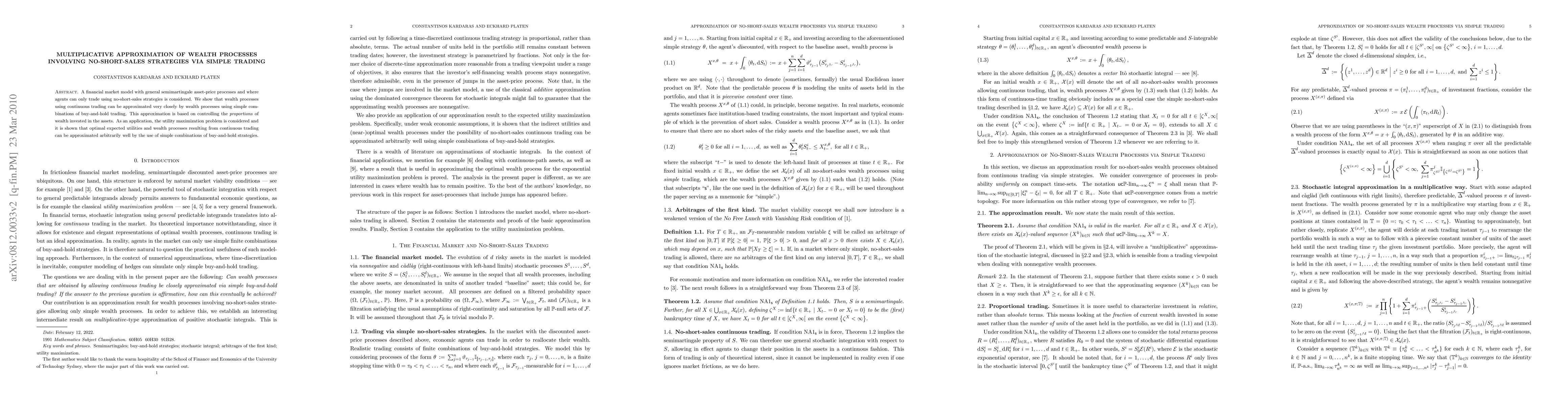 Researchers show that wealth processes in financial markets can be approximated closely using simple trading strategies, including buy-and-hold methods, without short-selling.