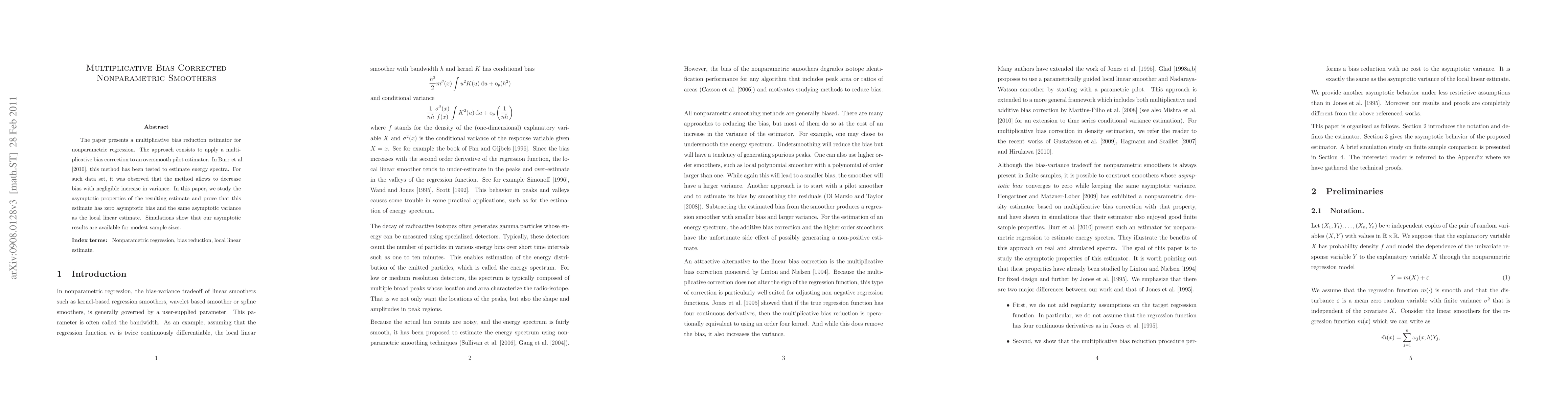 The paper presents a multiplicative bias correction estimator for nonparametric regression, proving its asymptotic properties and validating through simulations.