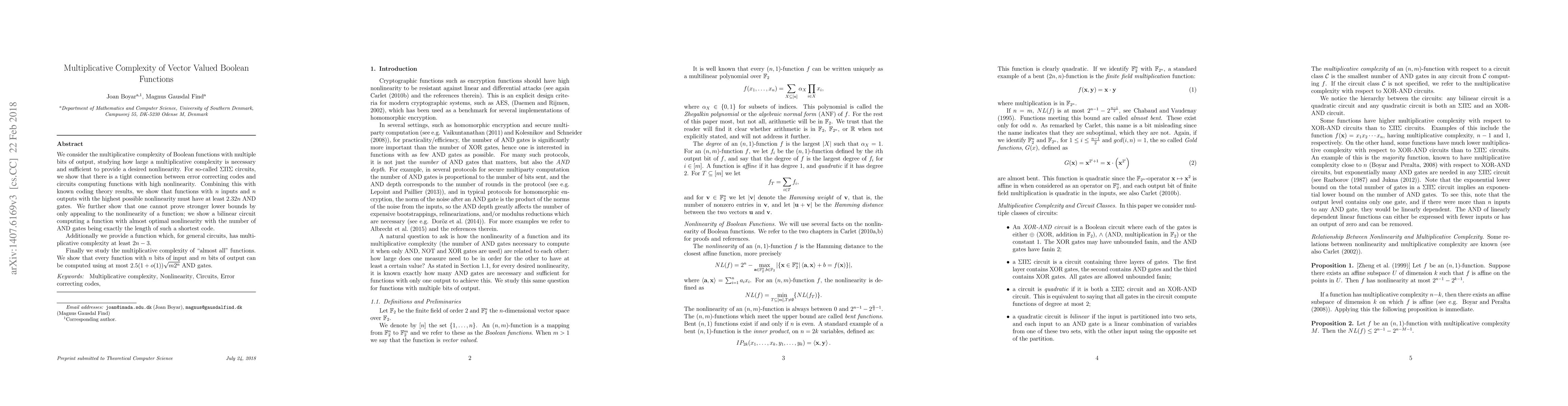 A new bound on the multiplicative complexity of certain Boolean functions was established, providing a significant improvement over previous results.