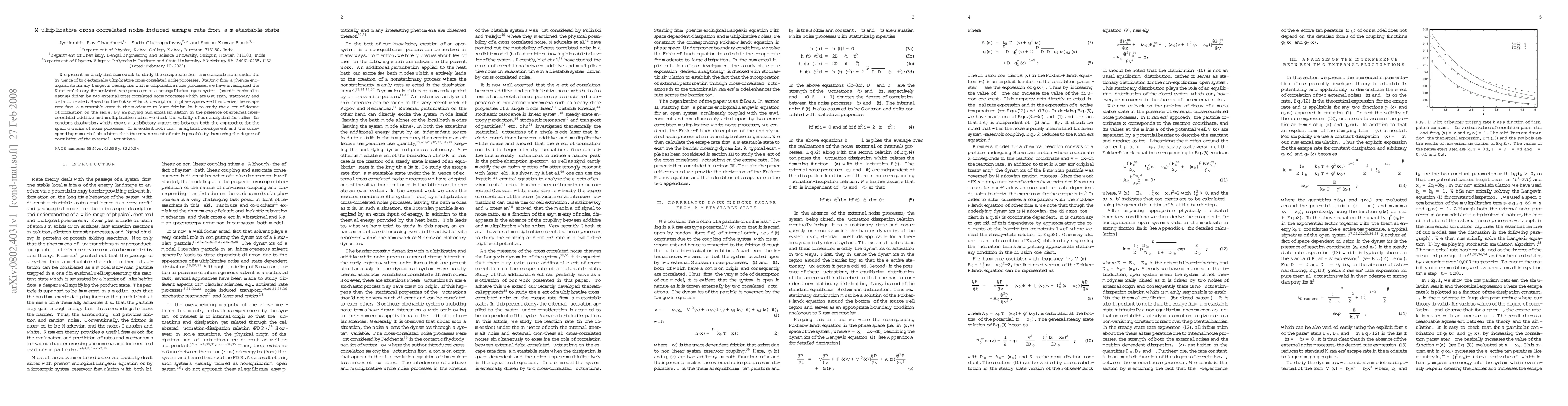 This paper develops an analytical framework to study the escape rate from a metastable state under the influence of two multiplicative cross-correlated noise processes. The authors derive the escape rate using Kramers' theory and validate their findings with numerical simulations, showing that increased correlation enhances the escape rate.