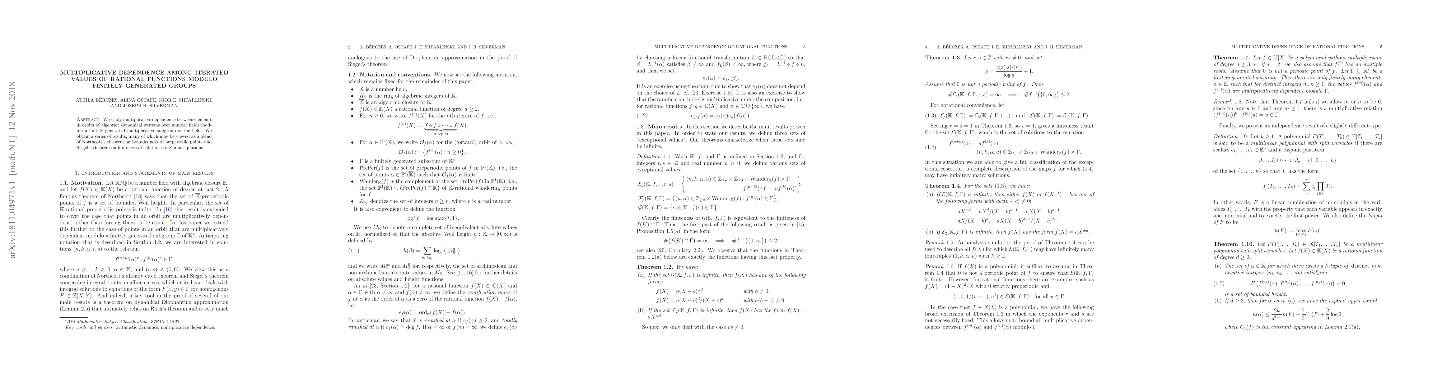 The paper studies multiplicative dependence among iterated values of rational functions modulo finitely generated groups, blending Northcott's theorem on boundedness of preperiodic points with Siegel's theorem on finiteness of solutions to S-unit equations.