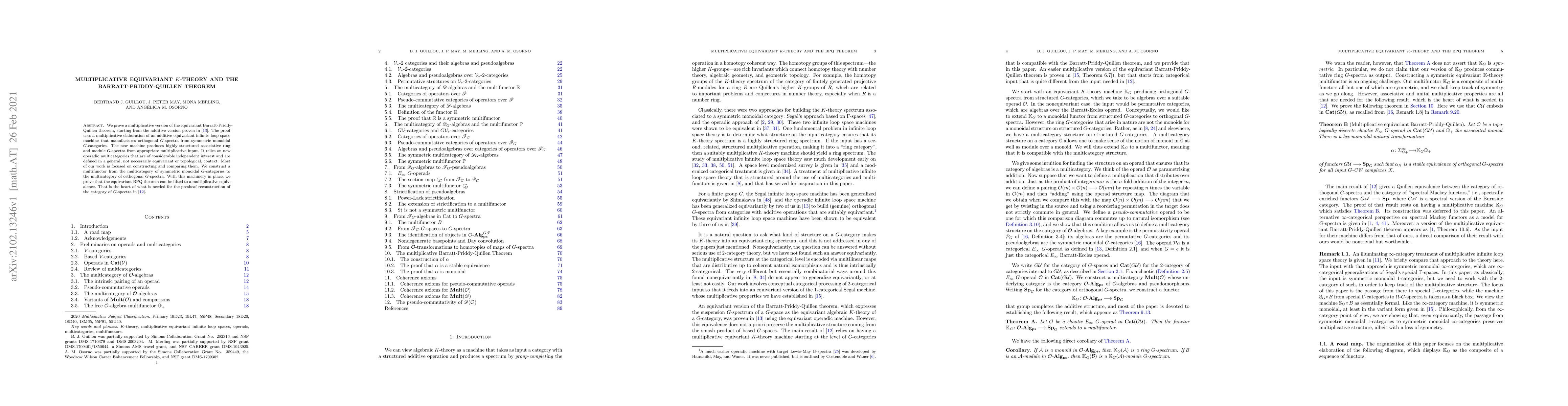 The paper establishes a multiplicative version of the equivariant Barratt-Priddy-Quillen theorem, leveraging a new machine that converts symmetric monoidal $G$-categories into orthogonal $G$-spectra. This involves constructing operadic multicategories and a multifunctor linking these categories to $G$-spectra, ultimately proving a multiplicative equivalence.