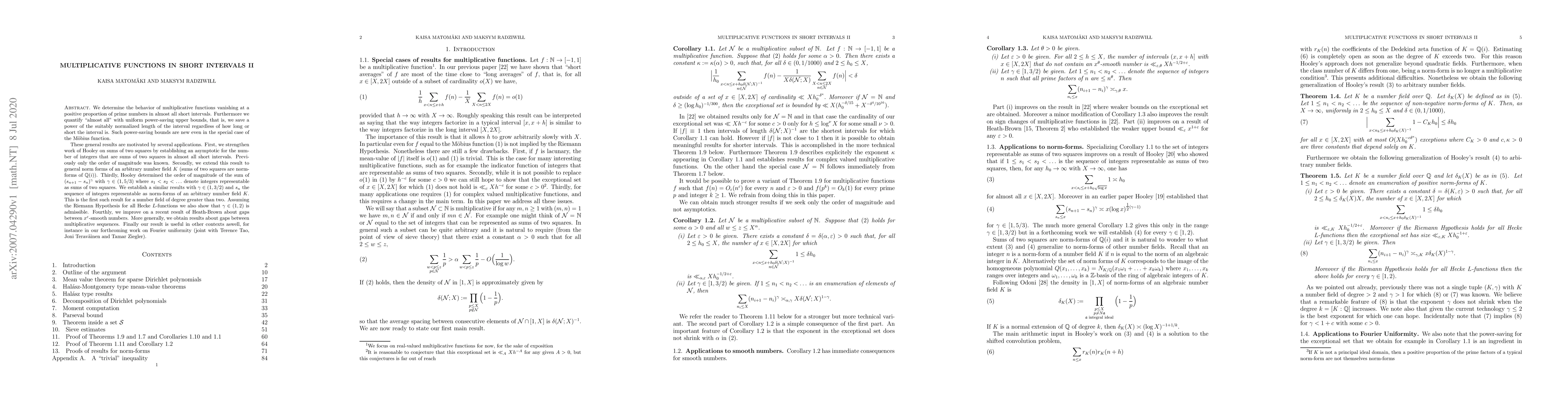 This paper investigates the behavior of multiplicative functions that vanish at a significant proportion of primes within almost all short intervals, providing uniform power-saving bounds. It extends Hooley's work on sums of two squares, establishes asymptotics for norm forms in arbitrary number fields, and improves results on gaps between smooth numbers and multiplicative sequences.