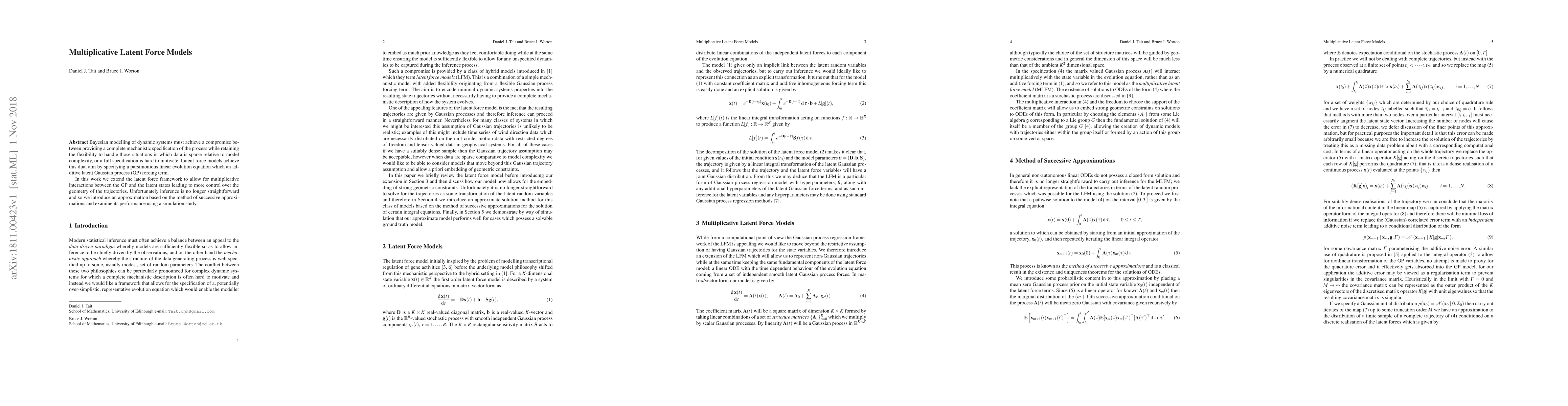 This paper extends latent force models to incorporate multiplicative interactions, enhancing trajectory control, but complicates inference. An approximation method based on successive approximations is introduced and evaluated via simulation.