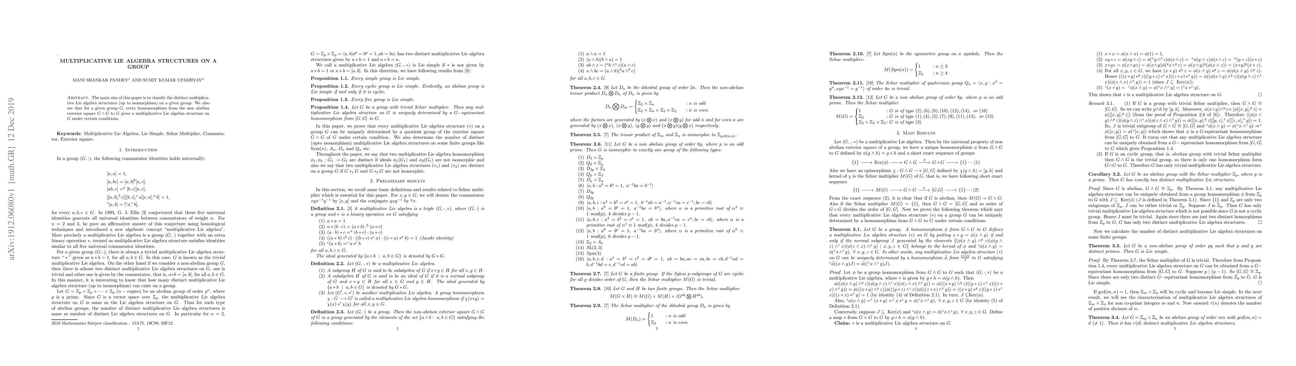 This paper classifies distinct multiplicative Lie algebra structures on a given group, demonstrating that every homomorphism from the non-abelian exterior square of the group to itself under certain conditions induces such a structure.